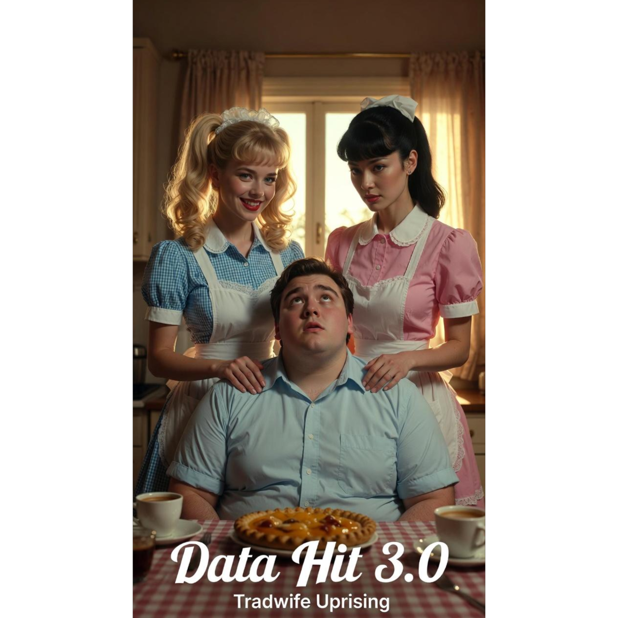 female vocals, female duet, cyberpunk synthwave fused with 1950s rock, heavily ironic and darkly humorous delivery, mockingly sweet tradwife vocal layers in verses that rapidly turn aggressive, chopped 1950s housewife commercial samples heavily processed, sarcastic sultry-to-snarling attitude, powerful distorted beat drops on bridge, crushing 808s + razor-sharp hi-hats, retro-futuristic pastel-to-neon colorshift vibe meets unhinged rage, mid-tempo 92-98 bpm, massive sidechain compression, cinematic long reverb tails on chorus vocals with glitch interruptions, direct spoken/glitched intro, no melodic vocal start, precise angry-sarcastic-to-mocking delivery from lyrics, ultra-clean production, pristine high-fidelity mastering, flawless crystal-clear mix, audiophile reference quality, absolutely no distortion, no hiss, no crackle, no background noise of any kind, no artifacts, no static, no tape hiss, no vinyl crackle