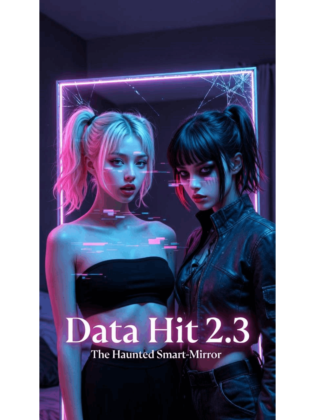 dark cyberpunk synthwave, 80s retro neon horror fusion, eerie mirror reflections, glitchy vocal effects, sultry teasing female vocals with sarcastic ironic delivery, pulsing deep bass, shimmering holographic synth pads, subtle trap hi-hats, building tension drops with mirror crackle stutters, retro-futuristic haunted luxury atmosphere, playful body-horror undertones, high-energy digital possession vibe, direct spoken intro, no melodic vocal start, precise vocal delivery from lyrics, ultra-clean production, pristine high-fidelity mastering, flawless crystal-clear mix, audiophile reference quality, absolutely no distortion, no hiss, no crackle, no background noise of any kind, no artifacts, no static, no tape hiss, no vinyl crackle, no digital glitches, Do not change any words inside brackets, Sing exactly as written, ‑male vocals, ‑fast tempo, ‑clean pop, ‑innocent vibe, ‑acoustic instruments, ‑country, ‑jazz, ‑lo-fi chill, ‑bright pads, ‑shy delivery, ‑background noise, ‑static, ‑hiss, ‑shimmer, ‑clicks, ‑pops, ‑floor noise, ‑distortion, ‑artifacts, ‑tape hiss, ‑vinyl crackle, ‑digital glitches, ‑low fidelity, ‑muddy mix, ‑unwanted reverb, ‑breathing noise, ‑intro humming, ‑oh oh ah ah, ‑melodic ad-libs, ‑vocalizations at start, ‑unnecessary scats