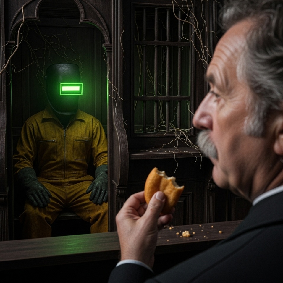 [Style: A raw and catchy Rioplatense Stoner-Funk track with a lo-fi prison percussion, The rhythm is built from the real sounds of a metal jug hitting and scraping against cell bars, A massive, fuzzy, and groovy stoner-rock bassline drives the song, The main melody is a soulful, whistled hook, The vocals are a charismatic, slightly cynical Rioplatense baritone, The song has the chaotic, genre-bending energy of a cult classic anime, ]