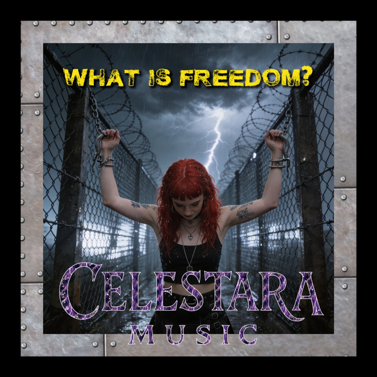 High-energy cinematic pop-rock anthem featuring a powerful female lead vocal, The track opens with ethereal vocal harmonies and atmospheric synth pads before transitioning into a driving mid-tempo groove at 120 BPM, The instrumentation is centered around distorted electric guitars playing rhythmic power chords, a punchy drum kit with heavy compression on the snare, and a thick synth bass that reinforces the low end, The vocal performance is dynamic, utilizing a breathy chest voice in the verses and soaring into a powerful, belted delivery during the choruses with subtle reverb and delay, The song structure follows a Verse-Chorus-Verse-Chorus-Bridge-Chorus-Outro format, The harmonic progression is rooted in a minor key, utilizing a common i-VI-III-VII progression that creates a sense of emotional urgency and triumph, Production is polished and wide, with layered vocal harmonies in the background and a clean, modern mix that emphasizes clarity in the mid-range