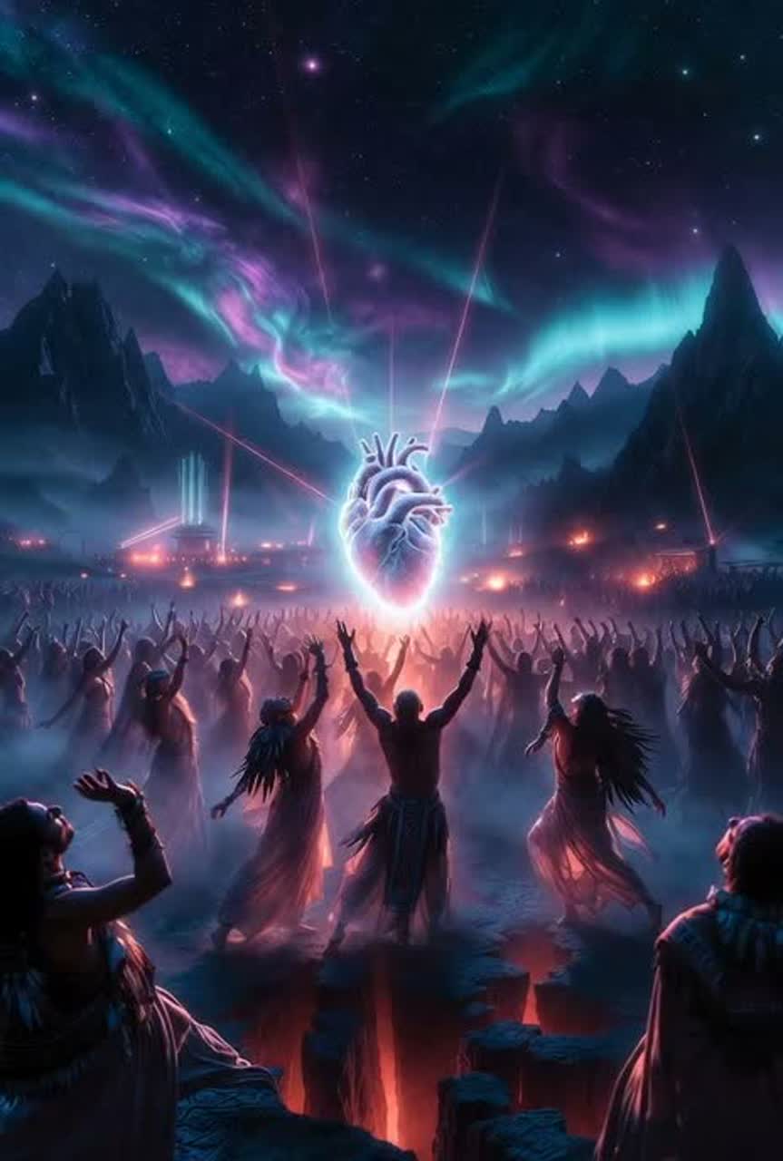 Ein schimmernd‑surrealer Trance‑Ritus — halb Tanzfläche, halb Meditation, in dem sich ein weltmusikalischer Geist mit futuristischen Rave‑Ästhetiken verbindet, getragen von hypnotischer Wiederholung im Einklang mit Melodie, 📐 STYLE BOX - **vorgeschrieben - 1:1 übernehmen!**
