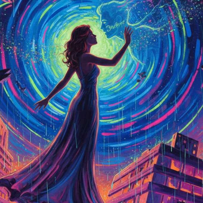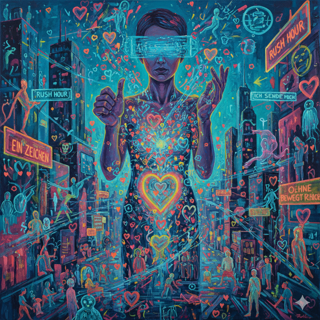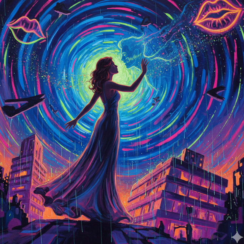 surrealen Traum von Sehnsucht und flüchtiger Nähe, Es beginnt mit einem verfremdeten Chipmunk-Sample und robotischem Vocoder, getragen von schwebenden 6/8-Drums und luftigen Pads, Flüsternde deutsche Vocals umspielen eine fragile Blockflöte und erzeugen eine intime, zarte Atmosphäre, die an verlorene Liebe im Traum erinnert, Die Strophen verdichten die Stimmung: metallische Hits, kantige Synths, geisterhafte Vocal-Layer und eisige, höhlenartige Pads öffnen einen weiten, hypnotischen Raum voller Melancholie und Erinnerung, Die Bridge gleitet in trip-hopiges Terrain: säurehaltiger Bass, dubby Drums, pulsierende Synths und eine warme Altstimme spiegeln Hoffnung und das Wiedersehen im Traum wider, Im Finale bricht ein retro-futuristischer Jungle bei 170 BPM aus: rasende Breakbeats, dreitönige Synth-Stabs und surreal verzerrte 70er-Melodien tanzen zwischen Erinnerung, Traum und Sehnsucht, während die Musik zwischen Intimität und ekstatischer Freiheit oszilliert, elektro funk break beats