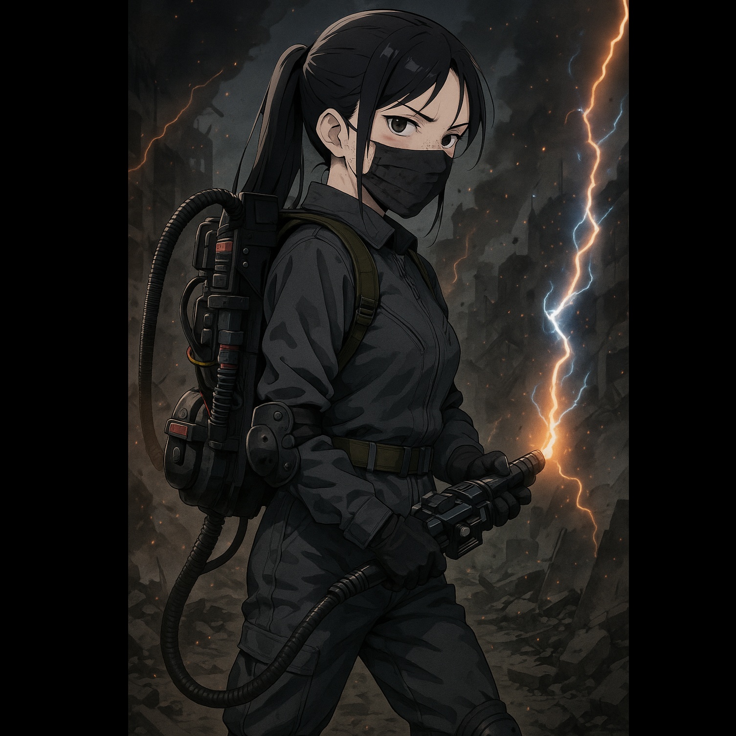 Style: Dark, futuristic, fierce, emotionally complex, part survivor, part weapon