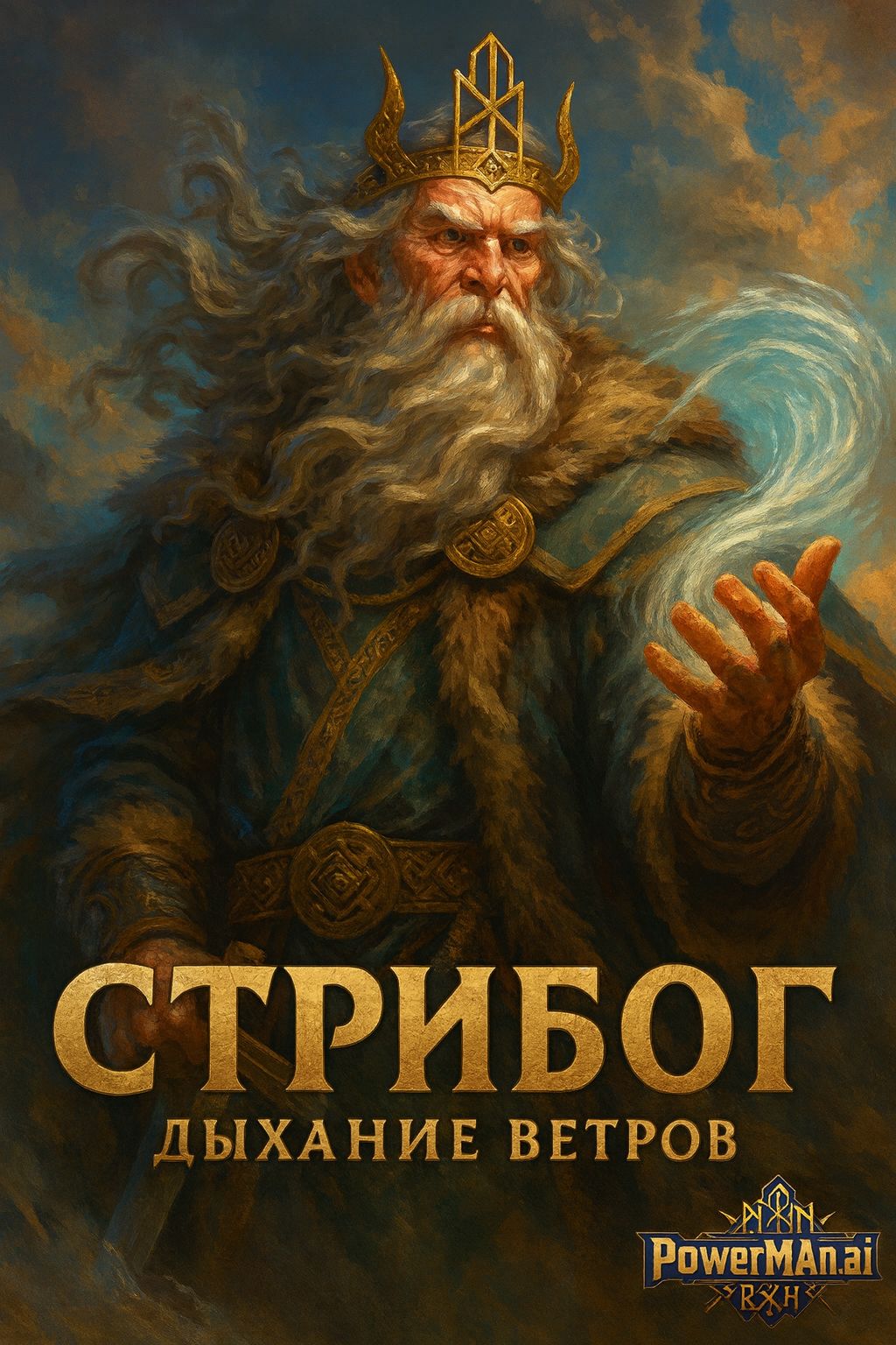 Ethno-Slavic Symphonic Power Metal Ballad about the ancient Slavic god Stribog, lord of winds and storms, Epic male and female vocals, Slavic choir, deep drums, gusli, strings, and wind sounds, Lyrics in Russian with ancient vibe, emotional and powerful atmosphere, heroic tone, cinematic symphonic metal arrangement with ethnic instruments, Title: "Стрибог — Дыхание Ветров"