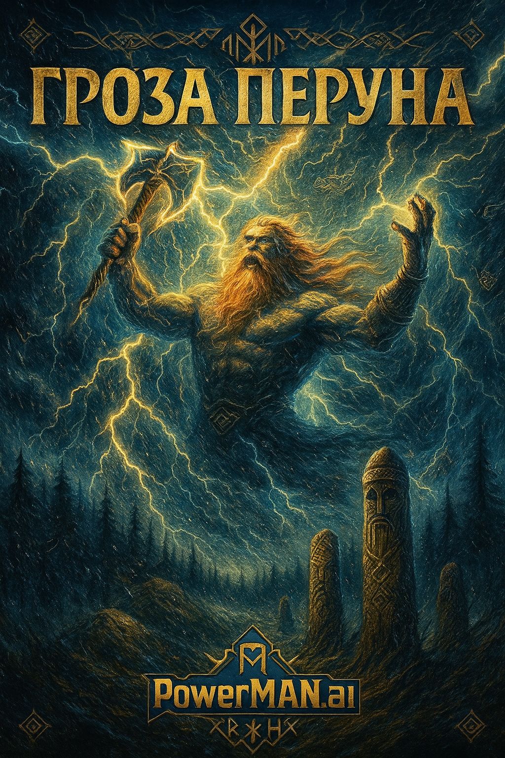 Epic Slavic Metal song about the Slavic god Perun, god of thunder and war, Style: Symphonic Power Metal, in the style of Catharsis, Instruments: electric guitars, symphonic strings, drums, choirs, gusli, Vocals: powerful male heroic voice, Atmosphere: epic, mystical, thunderstorm sounds, heroic and ancient Slavic mood, Tempo: 140-150 BPM, Lyrics: use the attached text exactly, Goal: 2-3 minute epic metal song with a dramatic, epic intro and strong chorus