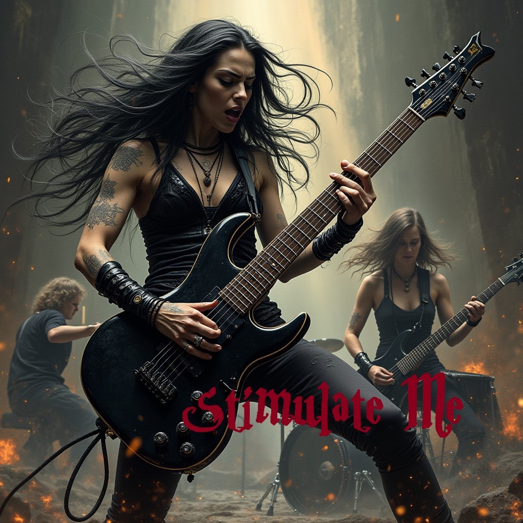 Death Metal-Black-Female-Metal-Band: E-Gitarre: Speed-Drums: E-Bass: Basslines: [Dark Rock-Female-Voice], sauber klar, nur klare Musik, keine Nebengeräusche, gemastert, professionelle Komp