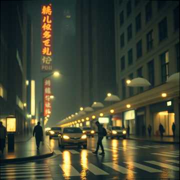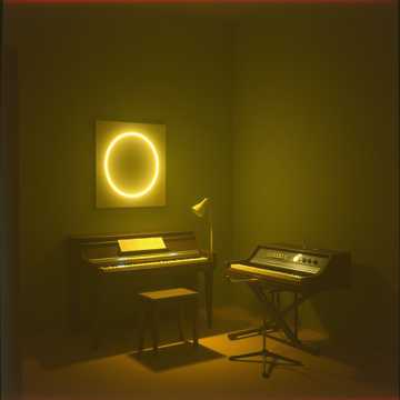 Warm cinematic lo-fi bed with mellow tape haze; lead vibraphone trades short phrases with soft felt piano over a steady brushed kit and lazy upright bass pedal, Distant rain and traffic hum glue the air together, while extended jazz-ish voicings drift through a relaxed A–B–A2 song form and a gradual, almost imperceptible fade; perfect for late-night shots of a quiet city, drone, lo-fi, tone
