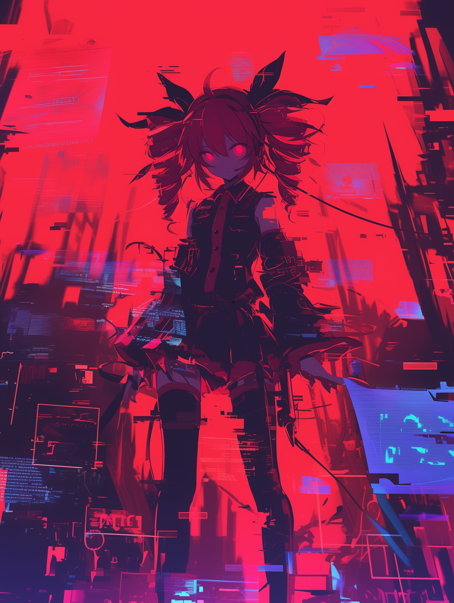 A chaotic and intense electronic rock song inspired by VOCALOID tracks like "Override" by Yoshiyo featuring Kasane Miku SV, The arrangement features glitchy synthesizers, distorted guitars, aggressive drum patterns, and digital noise, The female virtual vocal is sharp, expressive, and robotic, mixing Japanese lyrics with English phrases, The mood is high-energy, edgy, and emotionally unstable, evoking themes of digital overload, identity crisis, and rebellion against control, Includes fast-paced rapping sections, pitch modulation, and abrupt rhythmic shifts, Tempo: around 170 BPM, Highly layered and syncopated