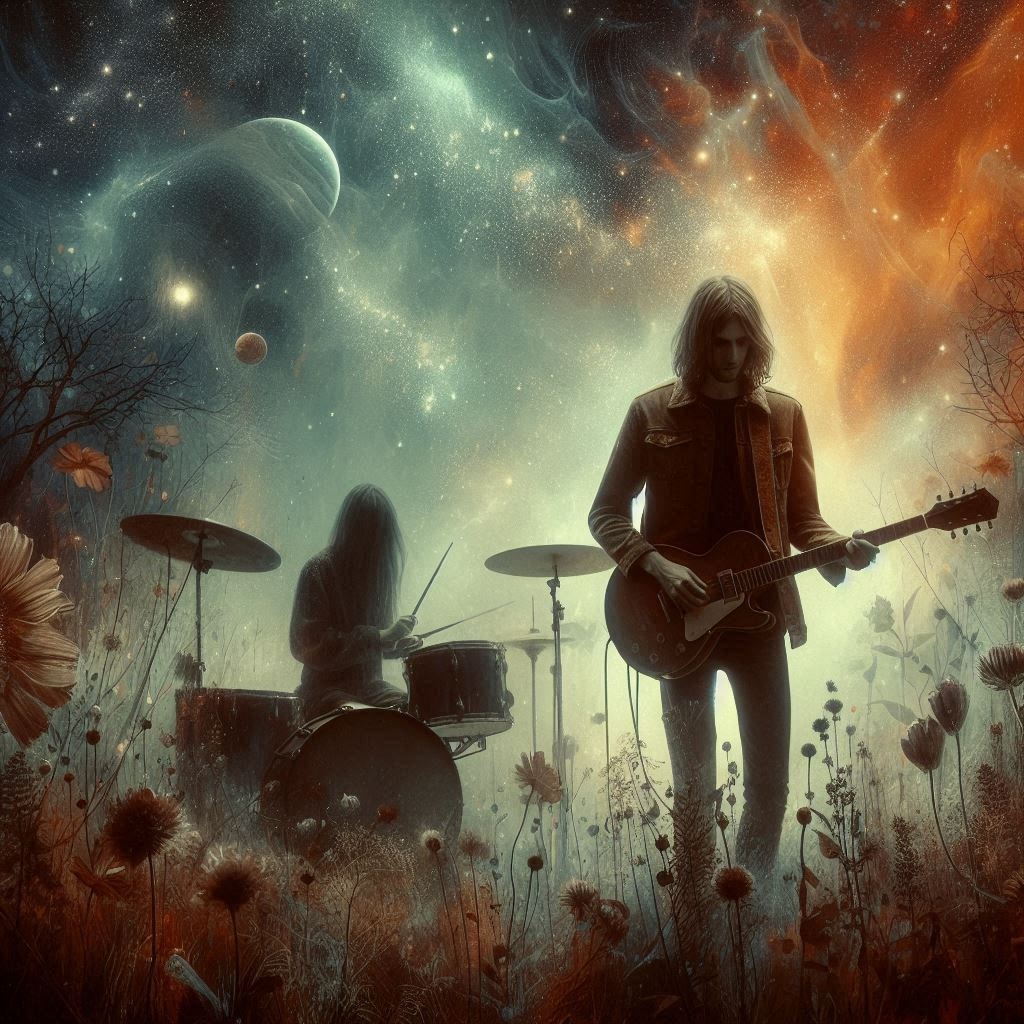 Melancholic, atmospheric experimental pop rock in 5/4 time, English pop style, Rich orchestration: textured guitars, Male vocals, hybrid drums (acoustic & electronic), evolving harmonies, subtle synth