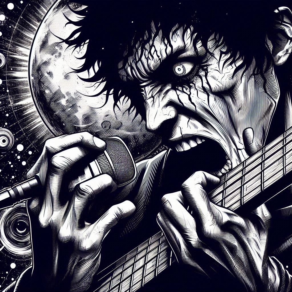 Dark Rock, Metal Core, Punk HardCore, textured guitars, Sarcastic and angry cry Metal vocals, drums acoustic, Hard RAP flow, ‑Piano, ‑haunting female vocals, ‑atmospheric synths, ‑classical, ‑melancholic piano