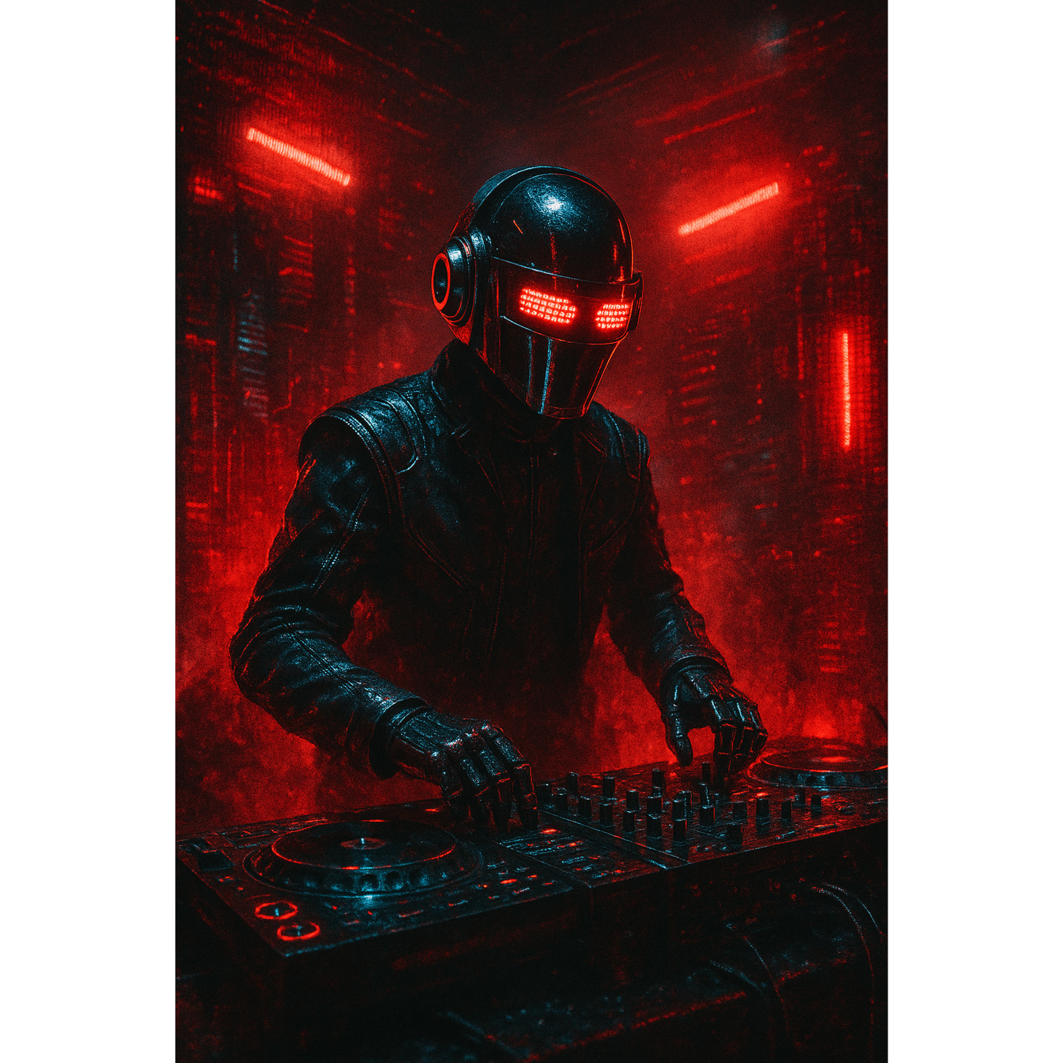 Imagine a corrupted AI falling in love on the dancefloor, Make it dangerously cool — the kind of track you'd hear at 3AM in a neon-lit Tokyo club