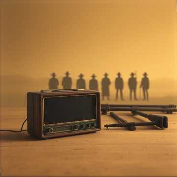 early western folk ballad, 1930s–1940s radio broadcast style, mono lo-fi recording, narrow frequency range, soft vinyl crackle and static, dusty and worn sound texture, male vocal low and weathered slightly distant from microphone, slow steady tempo, minimal arrangement, sparse acoustic guitar feel, subtle room echo like recorded in a small wooden room, nostalgic frontier atmosphere, as if playing from an old tabletop radio in another room