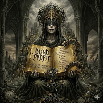 A gothic neoclassical warning. The blind Oracle reveals 13 riddles detailing how humanity’s obsession with gold and progress created a spiritual cataract, leading to the Great Severance.