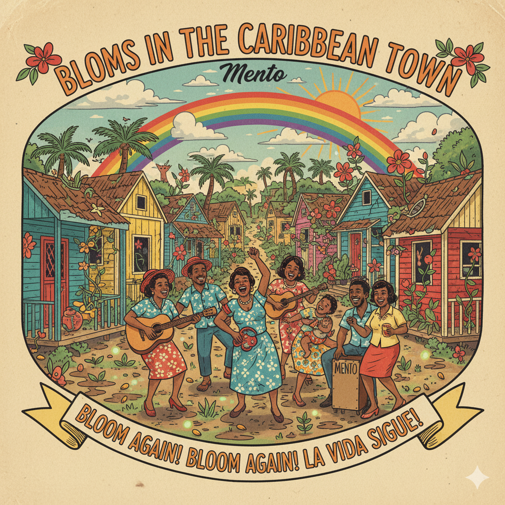 [Music Style: Mento, average 95BPM, light Caribbean folk groove with playful yet hopeful character]