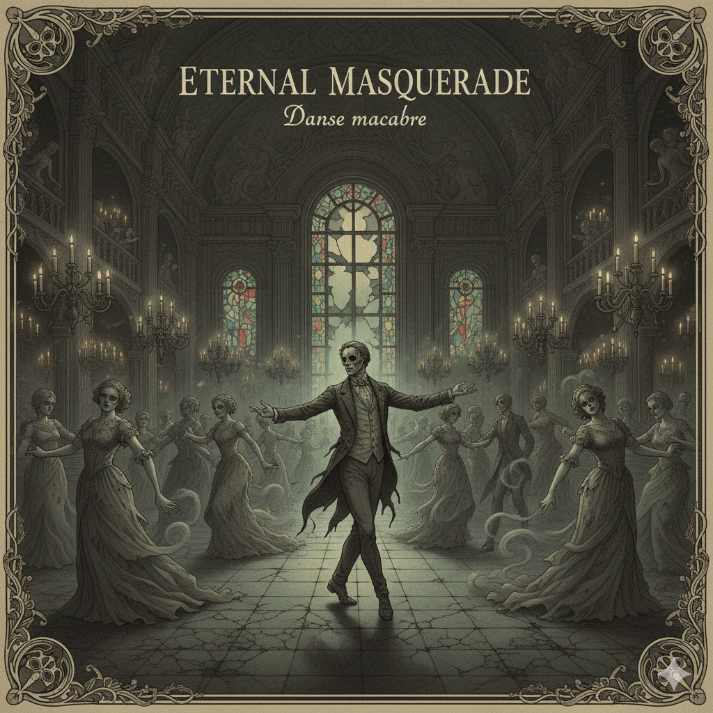 [Atmosphere: Mysterious, gothic, and eerie; evokes an abandoned ballroom where ghosts dance eternally under flickering candlelight; a blend of haunting beauty and unsettling tension]