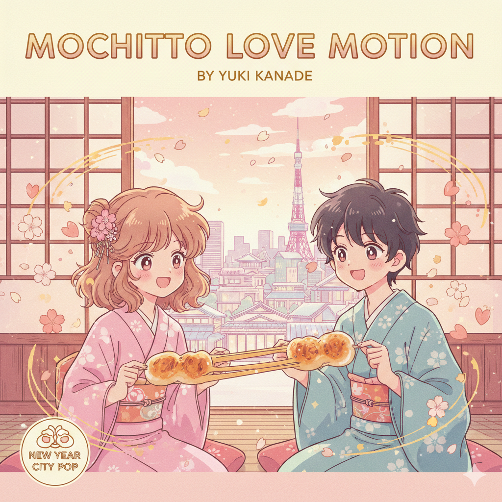 [Mood :Usage: Anime OP / Global CM / New Year CampaignEmotional keywords: Festive, Cute, Energetic, Sparkling, Hopeful, PlayfulScene description: Fast-paced New Year sunrise with confetti colors, otoshidama excitement, and a game-like speedrun vibe][Main Vocal :Female vocal / Range: A3–E5 / Style: bright, agile, slightly pitch-shifted / Tone: playful, energetic, kawaii][Main Instruments:1, Hyper pop synth lead – sharp, glittery2, Koto plucks – light, rhythmic sparkle3, Shinobue phrases – airy, festive accents4, Punchy digital drums – fast, crisp transients5, Sub bass + sidechain – warm, bouncy foundation][Vocal Instruments :FX voices, glitch chops, voice pad swells, light vocal percussion]
