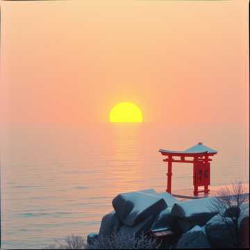 [Mood : Usage: CM / OP / Event Opening / Cultural Promo Emotional keywords: Ritualistic, futuristic, sacred, hypnotic, clean, celebratory Scene description: Pre-dawn shrine ambience, rising footsteps, cold wind, and the first light breaking into a modern cityscape]