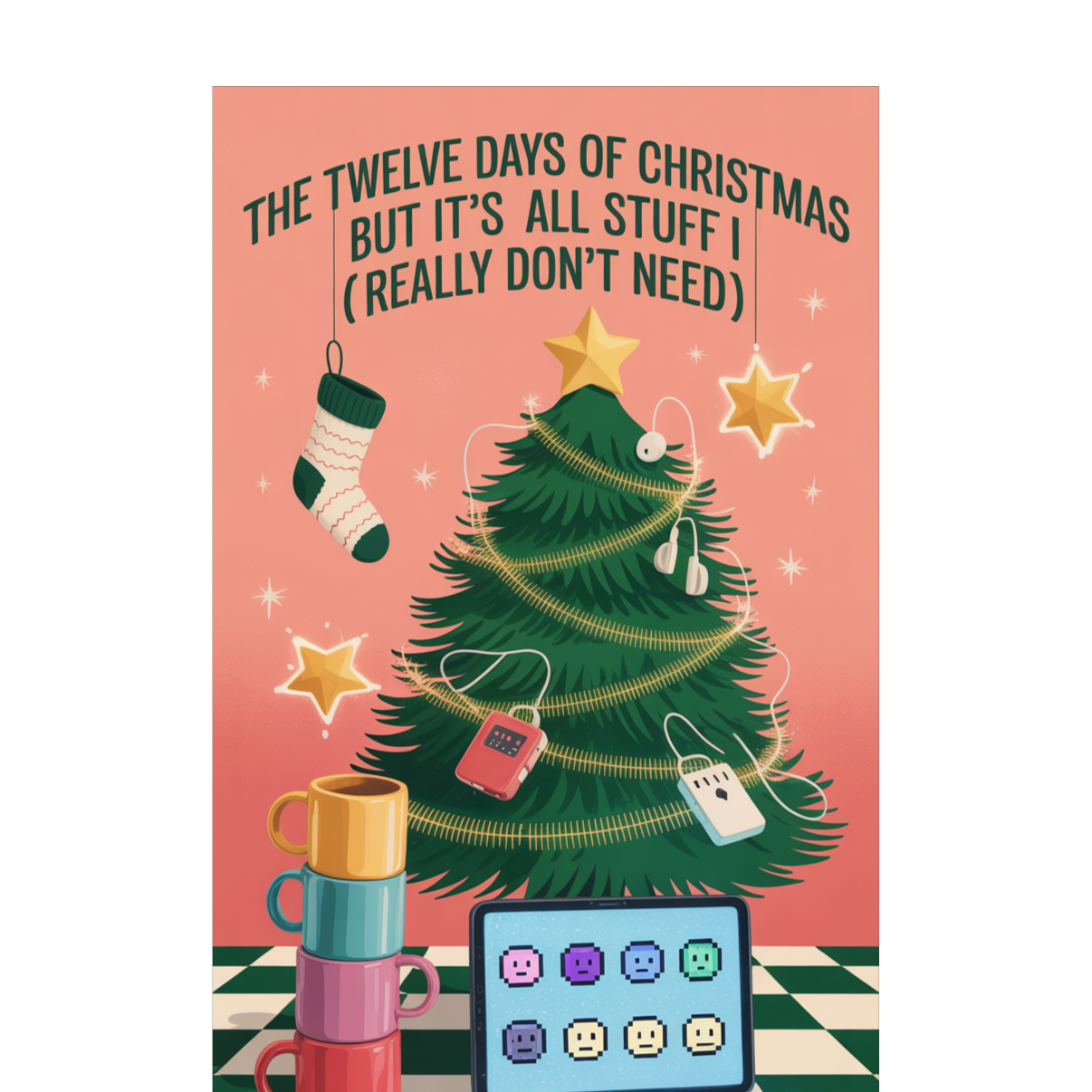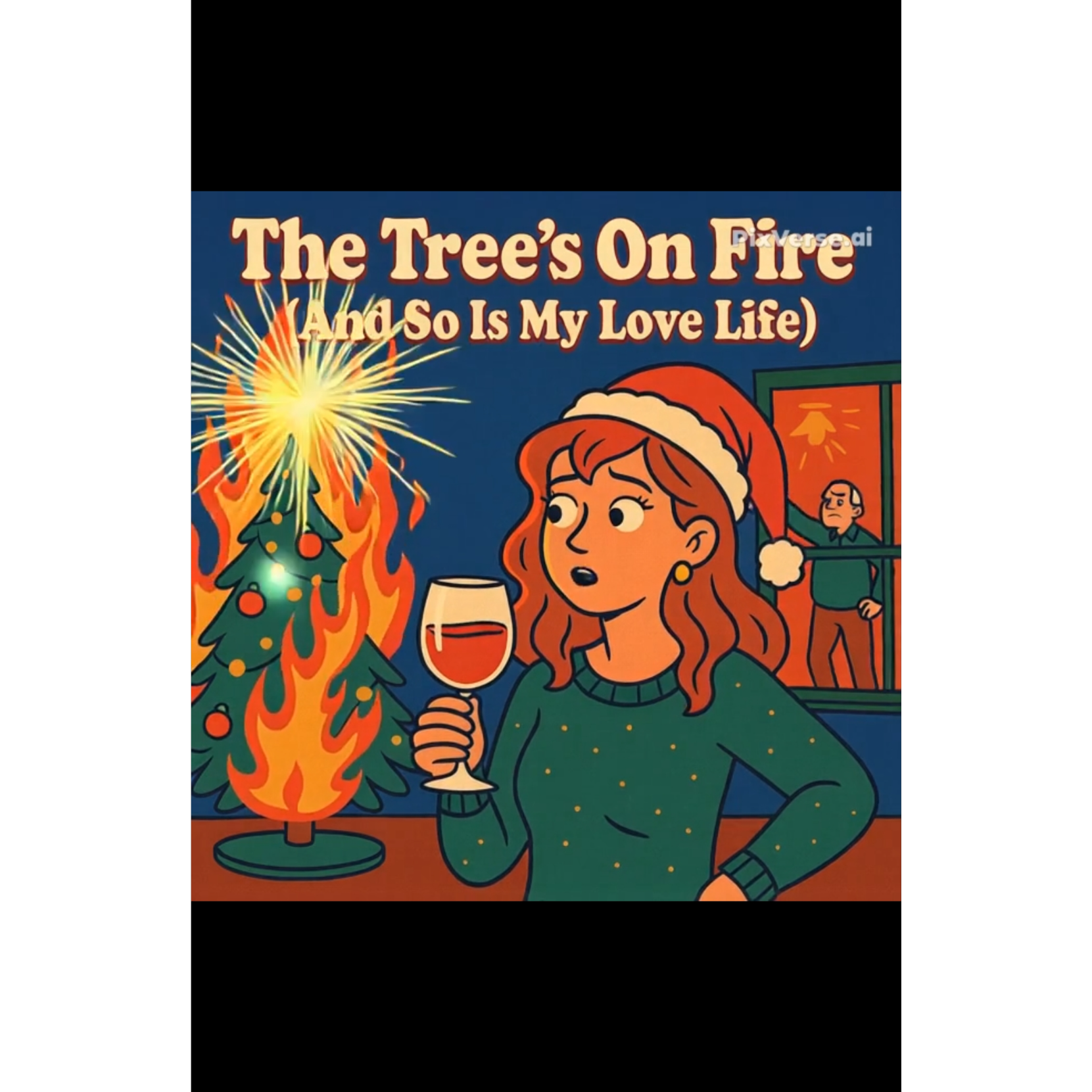 funny holiday pop with 80s synths, groovy country rhythm, female vocals, slap bass, sleigh bells, comedic chaos, story-driven