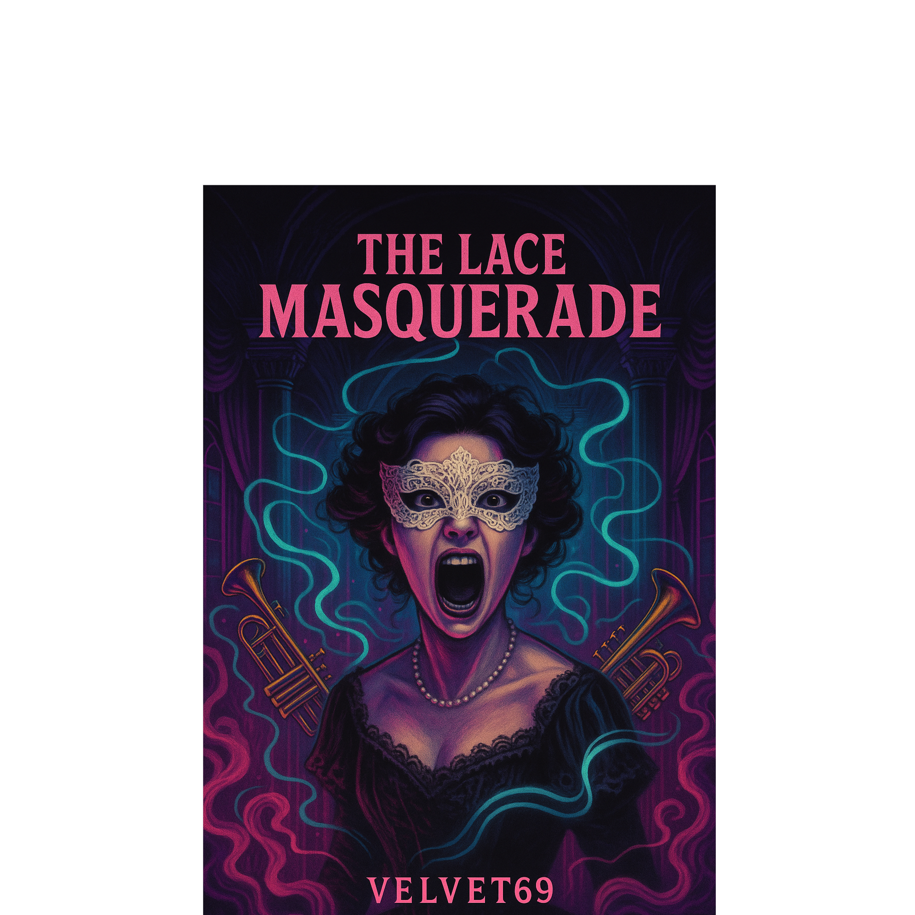 A genre-defying blend of **Screamo Show tunes**, **Electro Swing**, and **Goth Pop**, The verses swing with vintage brass, jazzy piano, and glitchy beats, evoking a haunted speakeasy, The pre-chorus swells with dark, moody synths and theatrical flair, Then the chorus erupts in screamo-style vocals over a dramatic, Broadway-style melody—urgent, explosive, and dripping with emotion, The whole piece balances eerie elegance with explosive chaos, perfect for a possessed tea party in a haunted parlor, Exclude: male vocals