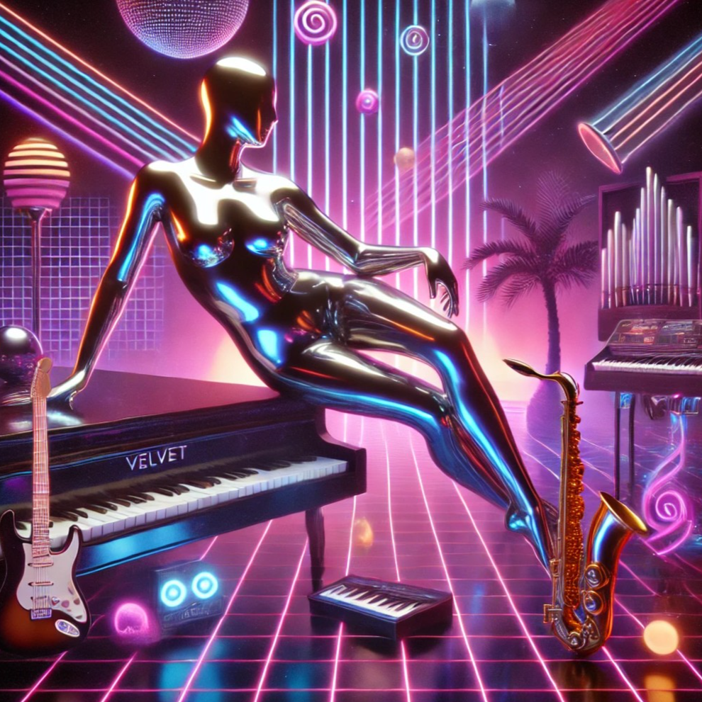`80s sensual instrumental, smooth electric piano, sultry saxophone, groovy bass, soft retro drums, atmospheric synth pads, Intimate, soulful, seductive mood, electro, pop, futuristic, Length: 3 min