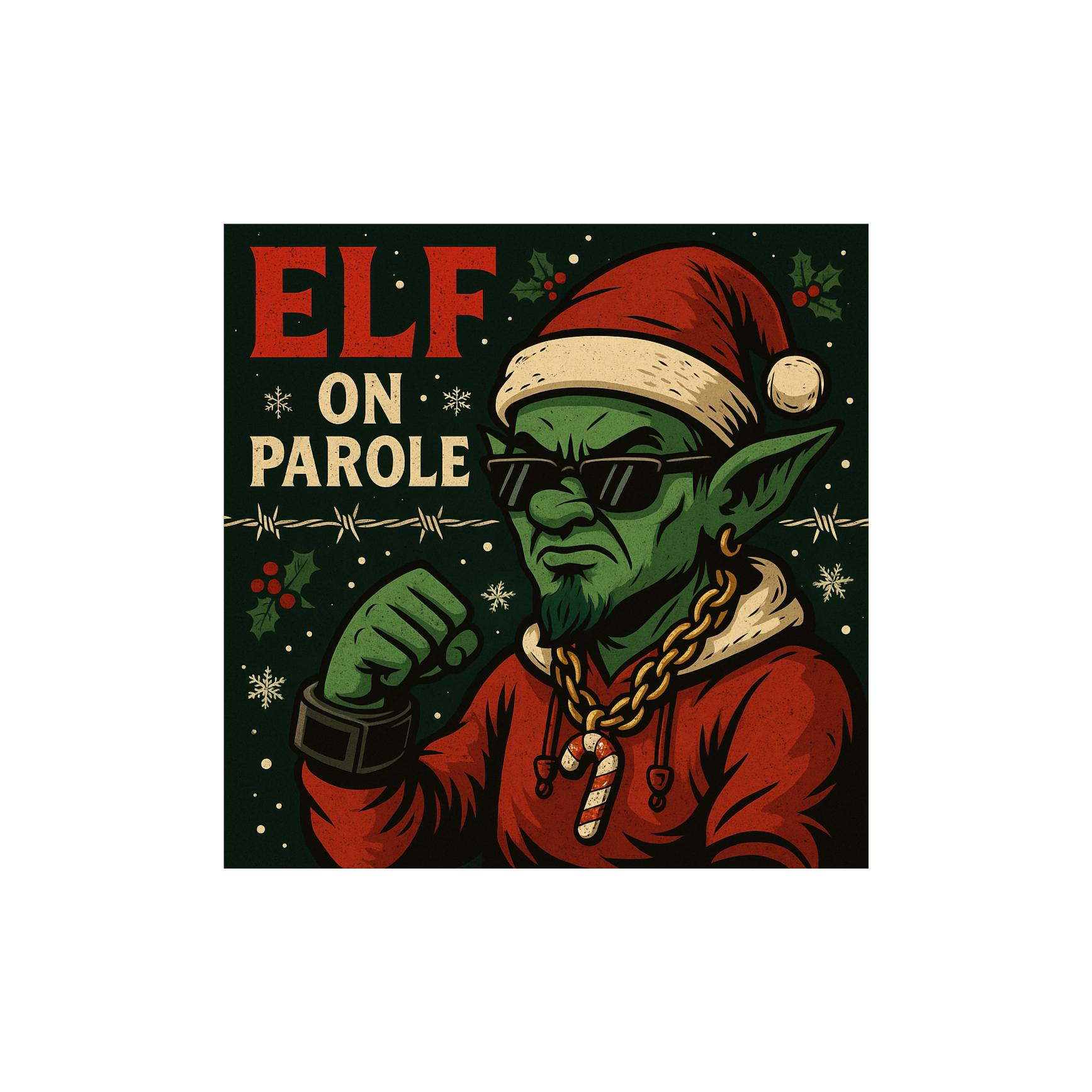comedy holiday rap, trap beat with jingle bells, male vocal, bouncy flow, funny lyrics, festive trap energy