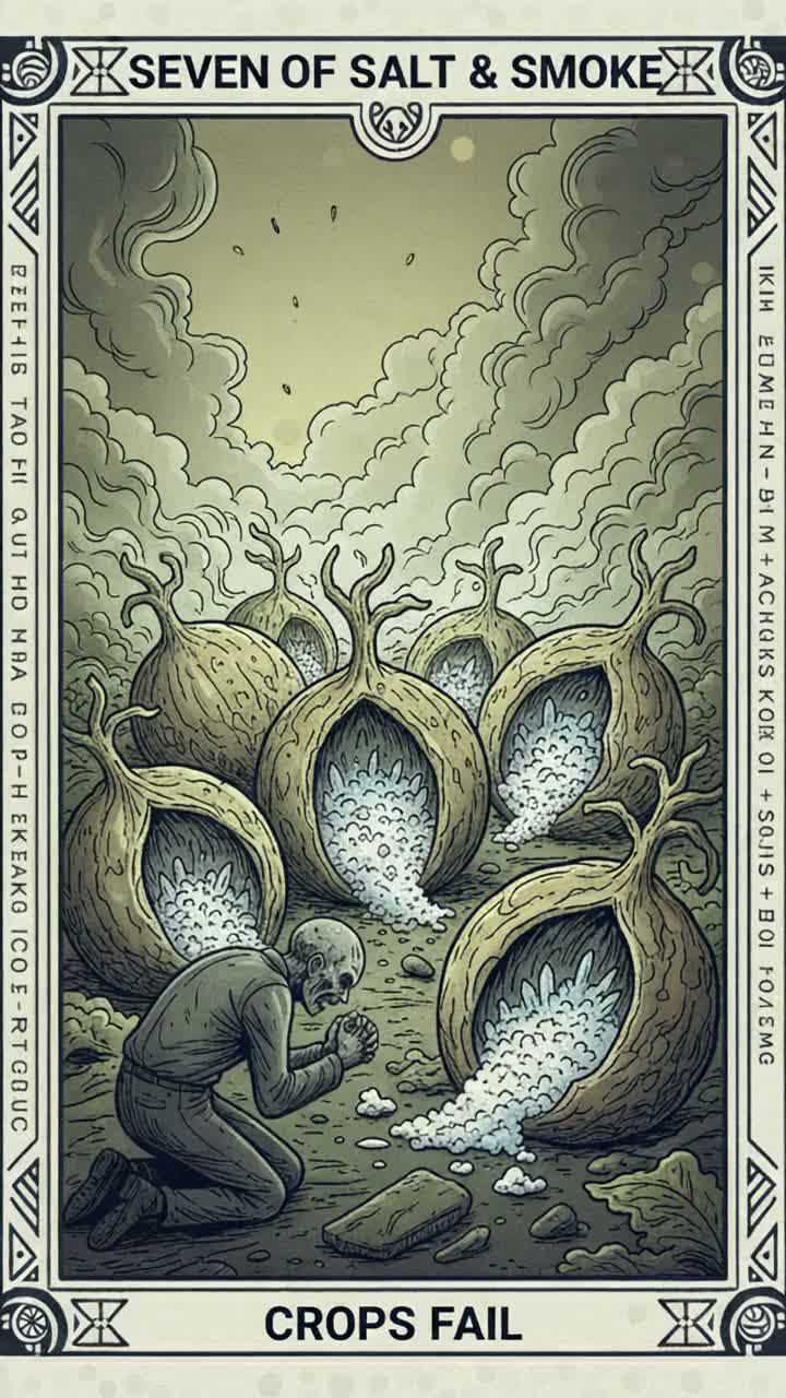 [Cinematic Baroque Pop meets Dissonant Experimental Jazz, 72 BPM, D minor, Mood: Tangible dread, beautiful ruin, realization of inevitable blight and failure, Instrumentation: Central melodic focus provided by mournful Cinematic Strings (cello/viola) and expressive Flute leads, underscored by complex harmonies from Analog Synth and Rhodes Piano chords, Percussion is sparse and organic, Integrate melodic accents from Sitar and Electric Guitar (clean tone), Effects: Introduce a recurring, sharp, high-frequency crystalline Digital Static SFX to simulate the corrupting, powdery salt exploding from the rotten fruit-pods, Vocal: Breathy Female Vocal lead with layers of Echoed Vocal Layers and a stately Harmonized Choir (Baroque Pop influence), Production: Sophisticated, layered mix emphasizing the dramatic, cinematic dynamics between the colorful and vibrant orchestration and the cold, corrupting salt effects, achieving a palpable aura of mystery, ]