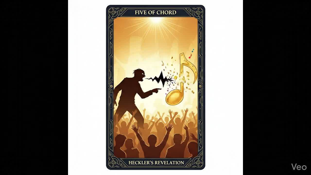 [Tropical Ambient meets Noise Rock, 110 BPM, G Major, Mood: False vibrancy, discord, painful sonic attack, Instrumentation: Light, airy vibraphone and steel drums establish a pleasant, vibrant groove, The atmosphere is abruptly shattered by a piercing, jagged, discordant analog synth tone (the heckler’s soundwave) and harsh digital feedback, Vocal: Soulful Female Vocals, clean and melodic, interrupted by a sudden [Spoken Word Shout] layered with digital distortion, Production: High contrast between smooth reverb and sharp, transient noise, ]