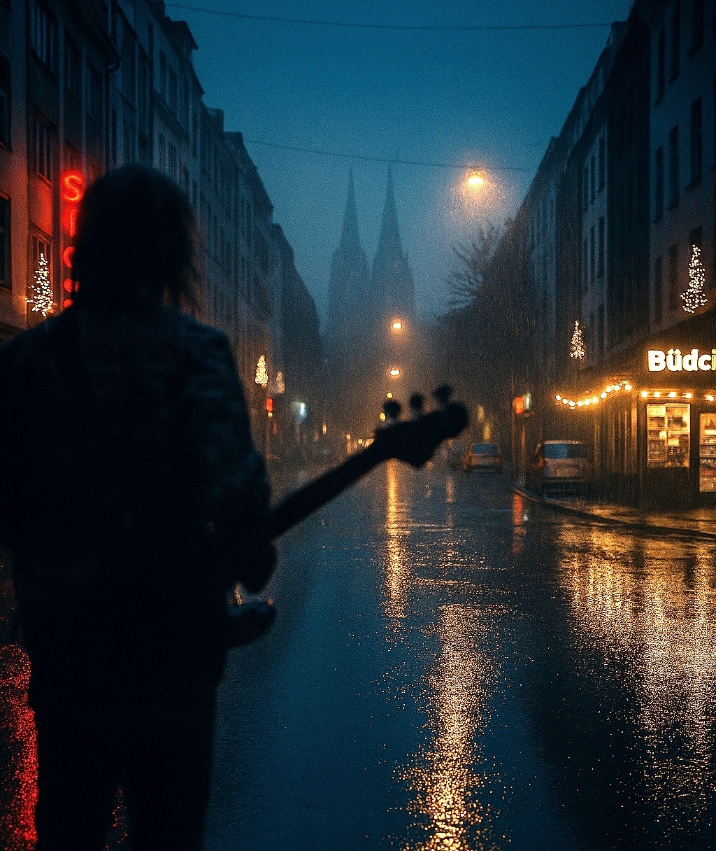 High-energy German punk rock live performance with a gritty but clear and melodic 90s/2000s vocal style, loud crowd interaction, playful humor, and chaotic stage ambience, German lyrics, Cheerfully roaring crowd chanting along, unison singalongs in choruses, extended call-and-response moments, audience-only sections, rhythmic clapping, “HEY-HEY” shouts, and wild crowd reactions, Live guitar improvisations with feedback, noisy punk slides, extended drum breaks, room-mic reverb, stage noise, mic-handling artifacts, and raw amplifier hum, Bright distorted guitars, tight punk drums, driving bass, and energetic tempo changes, Occasional breakdown sections for crowd shouts, Overall vibe: sweaty, noisy, festival-like, chaotic but tight, with comedic frontman banter and exaggerated live enthusiasm, Should feel like a packed open-air concert at dusk, the band hyping the crowd continuously, delivering loud, humorous anti-sun anthems with joyous irony