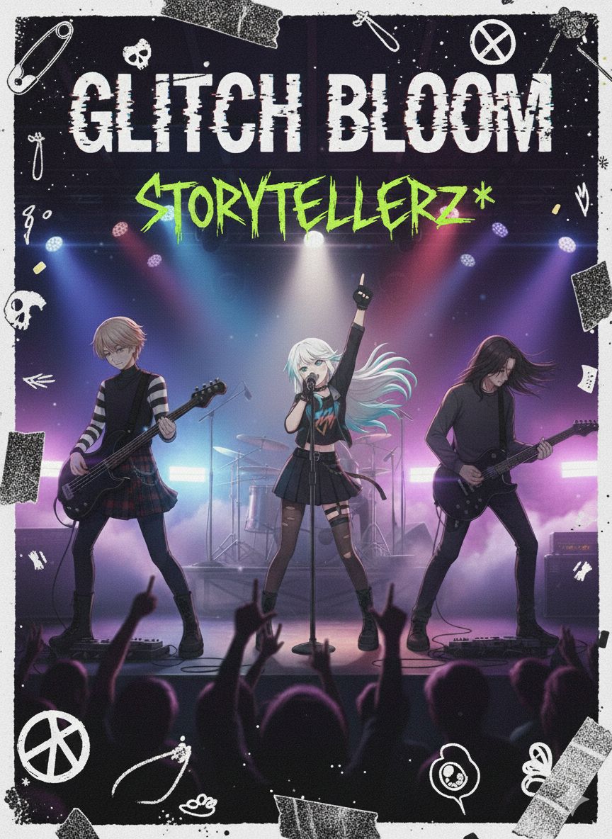 A powerful and energetic track blending alternative rock with electronic beats and atmospheric synthwave textures, The song features gritty electric guitars, driving drums, punchy basslines, and lush, cinematic synthesizers, The overall mood is rebellious, futuristic, and emotionally intense — but with a more uplifting and dynamic energy rather than overly dark tones, The soundscape is immersive and dramatic, evoking a strong and determined female protagonist and a second calm, expressive female voice navigating a high-tech, evolving world full of challenges and transformation, Live Concert, Stadium Concert, Live Audience, Audience Interactions