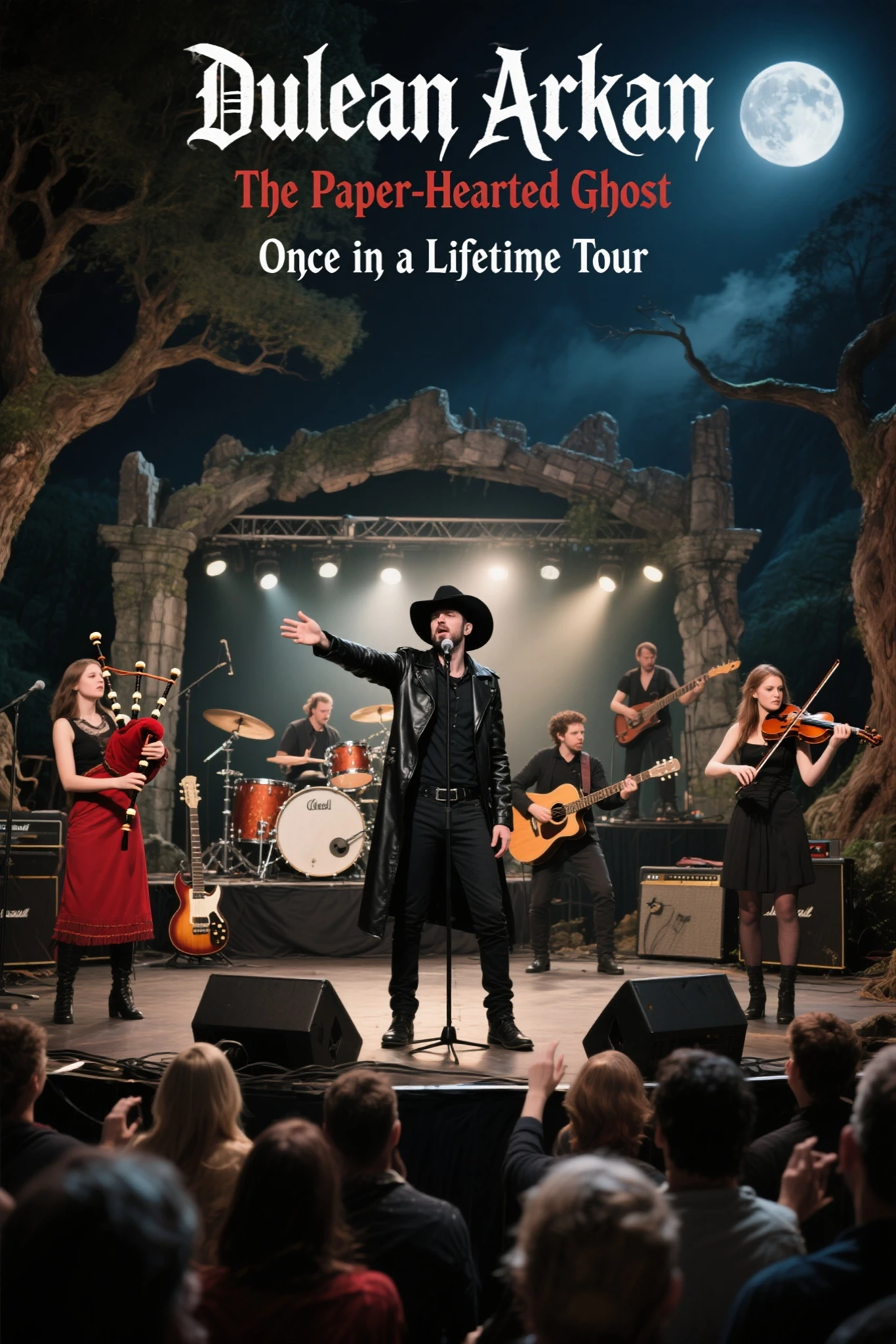 Once in a Lifetime, audience participation, It should sound like the Final song of a concert, with a dramatic build-up intro, intense crowd interaction, deep gothic vocals, and a powerful chorus, violin, cello, flute, harp, bagpipes, Live, Festival, Tour, unplugged, The audience sings along