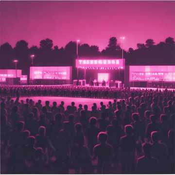 The live concert song opens with a creepily detuned music box motif surrounded by subtle deep bass pulses and haunting piano accents, Deep male vocals emerge, enveloped in layered synth textures, The energy escalates with intense, distorted synths and thunderous, aggressive drums, peaking in a live concert setting—crowd cheers and raw power anchoring the finale