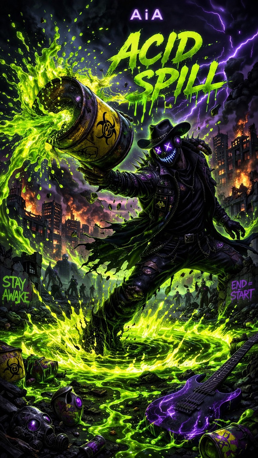 Heavy Cinematic Acid Bass At 110 BPM, Dark Minor Key, Roland 303-Style Acid Sequences With Resonance Automation And Distortion Driving The Core Groove, Massive Sub-Bass Layers Reinforcing Each Drop, Hybrid Trap-Metal And Dubstep Drum Patterns With Punchy Kicks And Tight Hi-Hat Rolls, Atmospheric Pads And Reverse Textures Building Tension, Industrial Impacts And Low-End Booms For Cinematic Weight, Clean Yet Aggressive Modern Production With Wide Stereo Imaging And Deep Low-End Presence