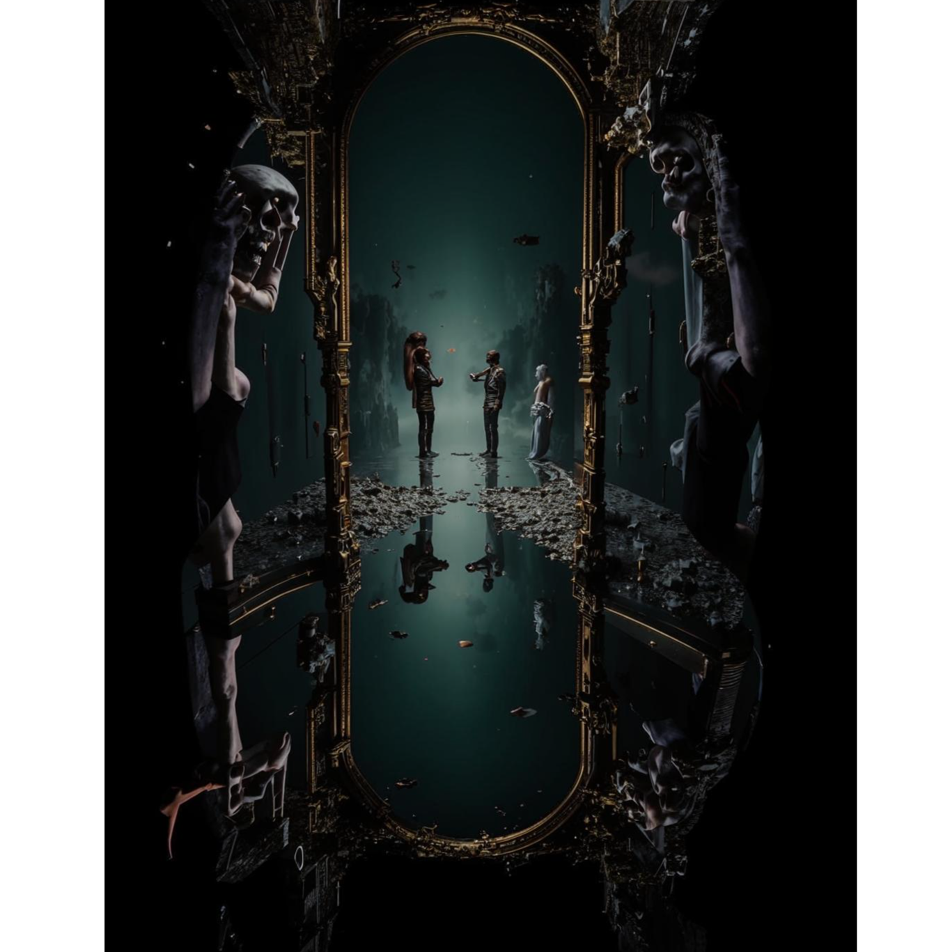 (Vocal Style: Deep, raw spoken word whispers building to intense, melodic shrieks and primal aggression, Dark, haunting, melancholic transitions, )