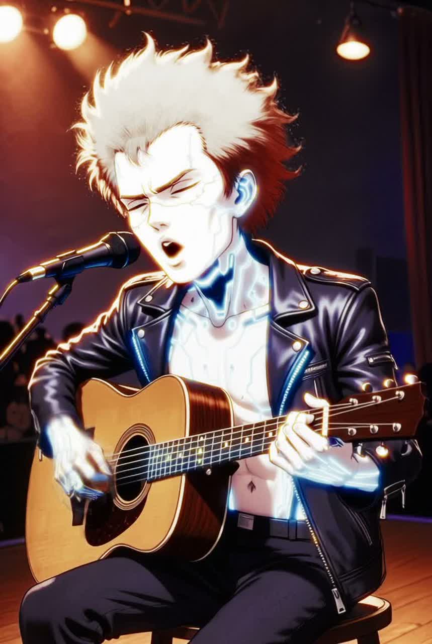 humming, synth, analog, modular, arpeggiated, neon, chrome, tech-noir, circuit-bent, computerized, digitized, electrostatic, ionized, static charge, high-voltage, power surge, short-circuit, overload, glitch, corrupted, artifacts, aliasing, bitcrush, quantized, clipped, parity error, buffer underrun, packet loss, latency, jitter, dropouts, granular, fragmented, chopped, sliced, retrigger, looped, gated, stop-start, cut-up, stutter, scratch, turntablism, crossfader, backspin, needle drop, fader cuts, mangled, warped, broken, gritty, abrasive, crunchy, distorted, breakbeat, syncopated, jungle, halftime, bouncy, hooky, chanty, sing-rap, talk-rap, deadpan, monotone, robotic, robot, android, automaton, mech, droid, cyborg, synthetic, metallic, servo, actuators, hydraulics, circuitry, cybernetic, interface, implant, neural link, wired, firmware, protocol, OS, mainframe, networked, data-stream, sandboxed, stack trace, vocoder, talkbox, formant-shifted, pitch-shift, harmonizer, android, cyborg