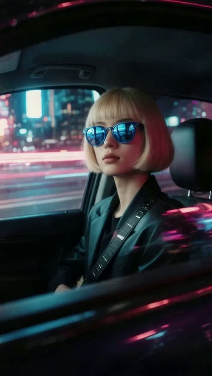 Feel: A light runaway vibe through neon city streets, Verses are heavy and tight, Choruses open up with bright, super-catchy melodies, Guitar is the main character, Verse: heavy chugging guitars, tight drums, rhythmic low vocals, Pre-Chorus: chords lift, octave guitar line rising, Chorus: bright E-major progression, catchy top-line, wide harmonies, shimmering lead guitar, Breaks: sudden silence, reverb tail, short tape-slow moment, motif echo from the chorus, Guitar Solo: melodic → fast → melodic, floating delay, Overall: energetic night-drive mood, cinematic brightness, guitar-forward