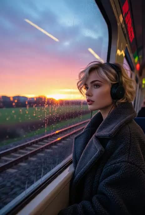 K-Pop girl group with hyperpop textures and Porter Robinson’s warmth, Slow, reflective pacing — steady rhythm like a train ride, blending bouncy synths with mellow chords, Unique female vocals with whispered pre-chorus, layered harmonies, and playful ad-libs, Glitch used as fleeting snapshots of moments/people, not overwhelming, Balance of mellow verses (scenes passing by), uplifting choruses (emotional reflection), and glitchy bridge (fleeting moments), ‑No aggressive drops or rock elements, ‑No overly dark or heavy tones, ‑No dense glitch chopping — glitches should be fleeting, ‑light, ‑and atmospheric, ‑No orchestral or acoustic folk instruments
