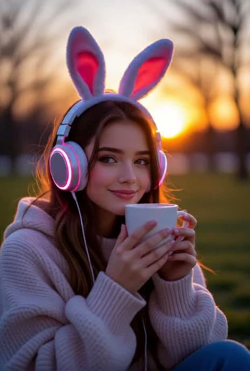 K-Pop girl group + hyperpop with playful rhythms, euphoric drops, and Porter-inspired warmth, Arrangement mirrors morning routine: very slow intro → gradual build → playful drop → sudden high-BPM chaos (bus chase) → soft outro, Unique female vocals with whispered intro, cute ad-libs, stacked harmonies, and fast-paced delivery in BPM shift, Bouncy synths, glitch sparkles, video-gamey arps, warm side-chained bass, Emotional yet playful balance: everyday life turned into an epic musical journey, ‑No heavy rock distortion, ‑no aggressive dubstep growls, ‑No orchestral or folk instruments, ‑No dark or ominous tones, ‑Glitches should be playful and sparkly, ‑not harsh or overwhelming, ‑Avoid co