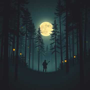 Dark Appalachian grunge blending southern gothic folk atmosphere with gritty alternative rock textures, Mid-tempo 100 BPM groove in E minor creates a hypnotic, eerie pulse, Banjo provides droning rolls and rhythmic strums while tremolo electric guitar and fuzz chords add haunting grunge weight, Fiddle uses sliding harmonics and mournful melodies to evoke mountain folklore tension, Drums lean on tribal floor-tom patterns and heavy snare hits to build cinematic momentum, Vocals are delivered in a gritty Appalachian baritone with storytelling intensity, supported by whispered backing vocals that enhance the eerie forest atmosphere, The track combines Appalachian folk horror imagery with 90s grunge power, creating a mysterious campfire-legend feel rooted in mountain superstition