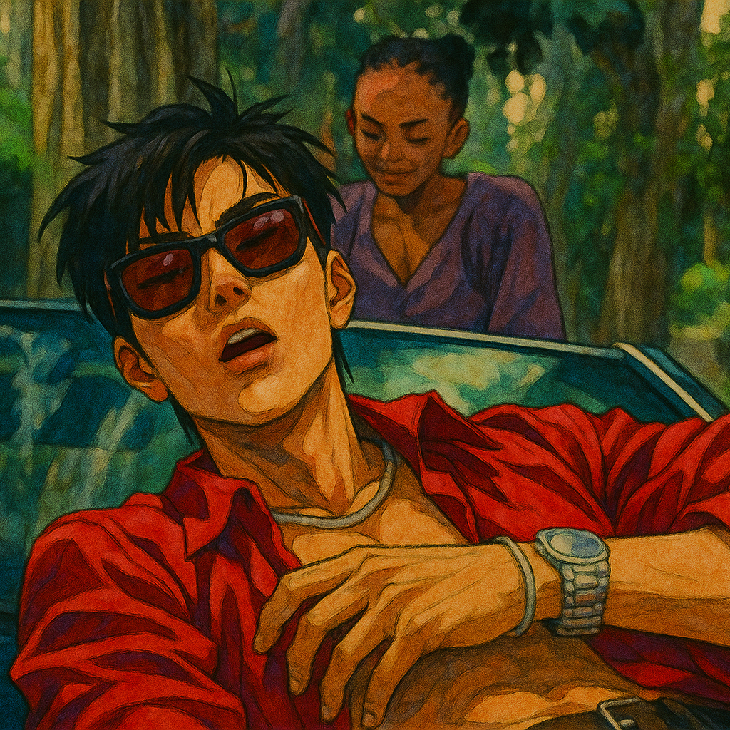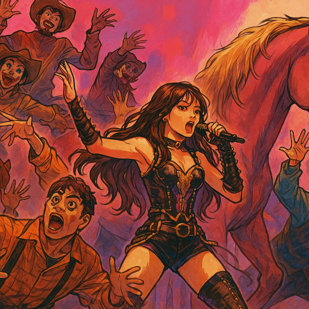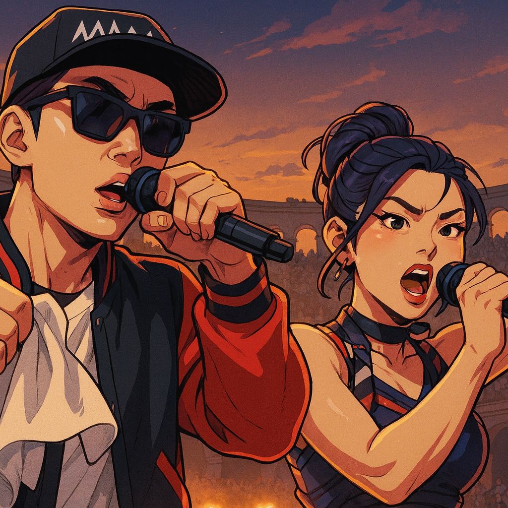 bedroom pop reggaetón fusion, dembow rhythm influence, experimental urbano edge, perreo-inspired beat structure, glitch-infused percussion, record scratching textures, chopped vocal samples, lo-fi synth pads, layered 808 bass, syncopated hi-hats, abrupt beat switches, multi-voice rap-sing delivery, casual yet confident vocal tone, playful ad-libs, call-and-response phrasing, nostalgic club aesthetic, intimate DIY production polish, distorted transitions, chaotic but cohesive arrangement, dance-driven pulse, carefree late-night vibe, retro-futurist energy, deliberately imperfect mixing, underground party feel, warm compression, digital grit, rhythm-forward momentum, kinetic and unrestrained chill atmosphere, English, Korean