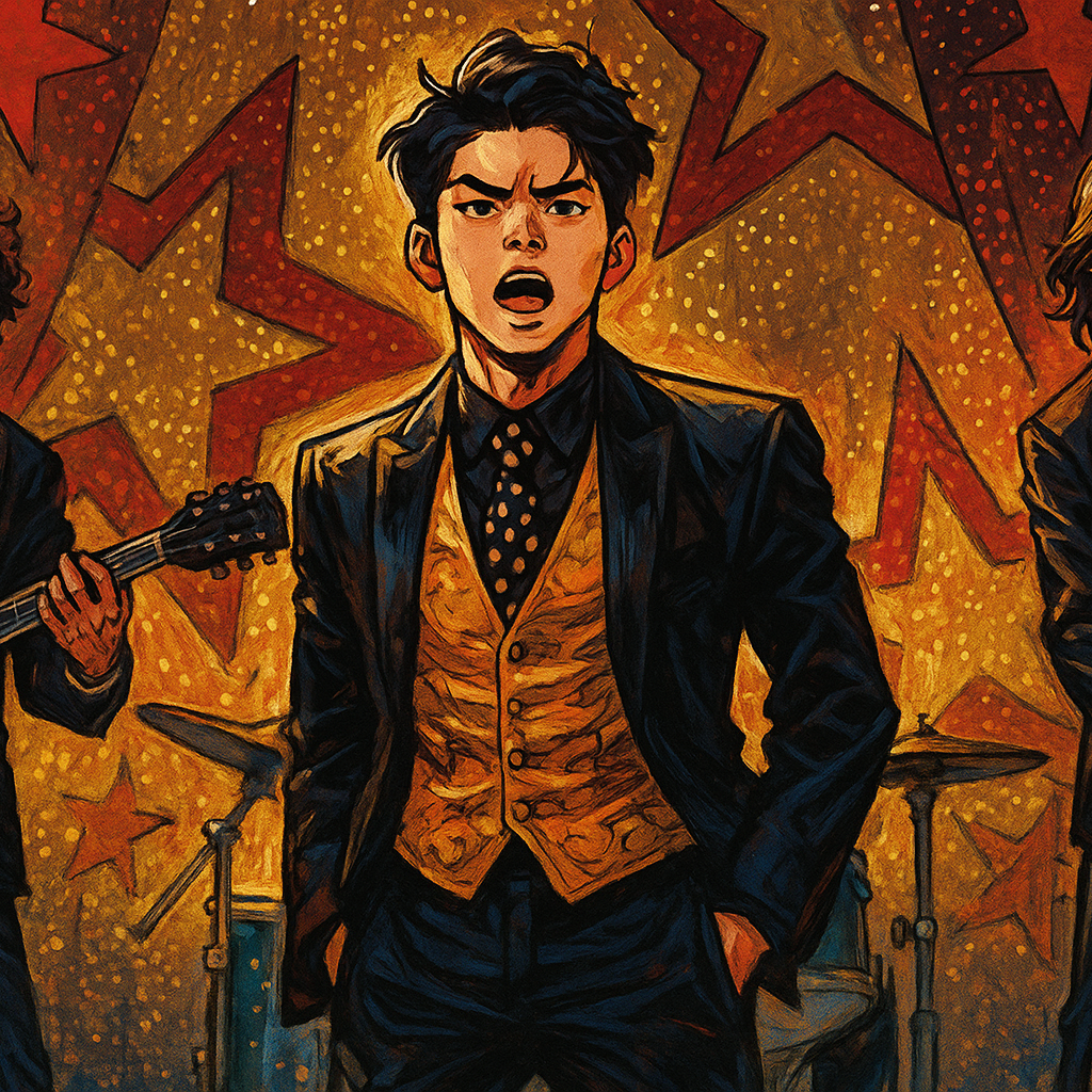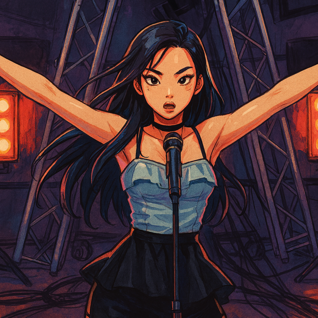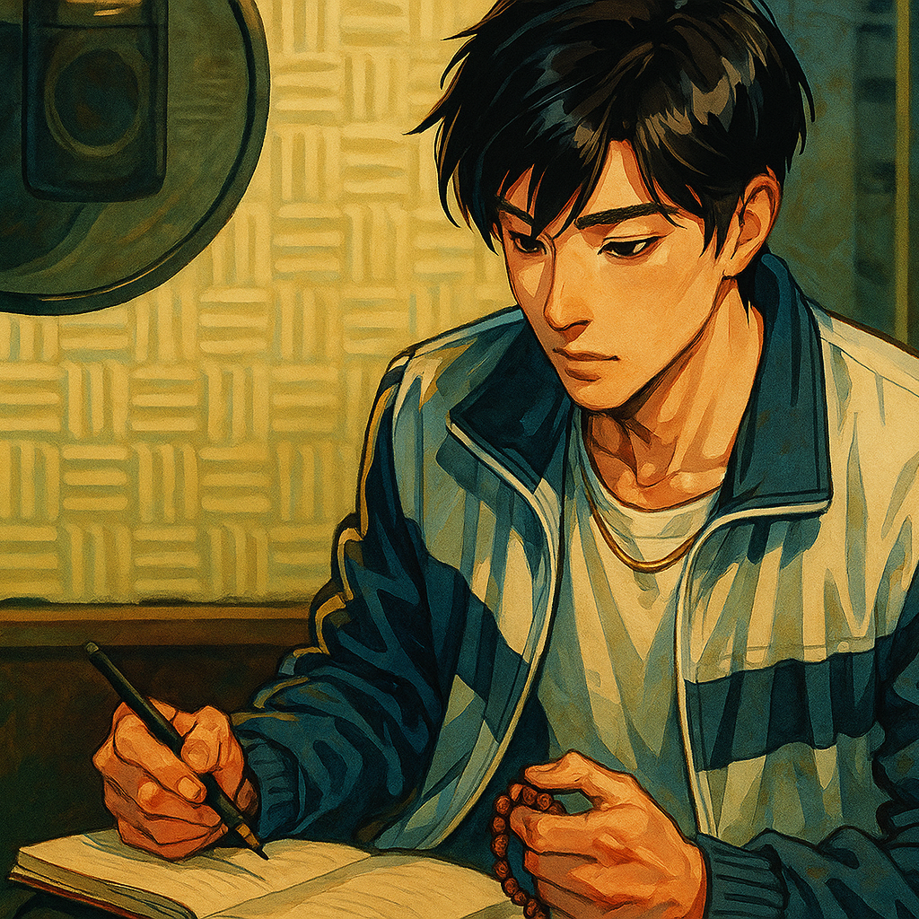 bedroom pop, min'yō, alt hip hop, K-rap, K-pop hip hop, confident narrative rap, intimate conversational cadence, lightly melodic hook, clear enunciation, two chord electric guitar riff, restrained drum kit, brushed snare with crisp kick, koto motifs, shamisen plucks, taiko pulse, hyoshigi ticks, warm sub bass, sparse synth pads, record scratching, glitch effects, understated swagger, cinematic but low key, nocturnal drive, focused tension, streetwise introspection, close mic vocal, soft tape saturation, gentle sidechain movement, minimal gating, mixed forward lead, airy room ambience, subtle parallel compression, tasteful stereo width, lean arrangement, steady groove