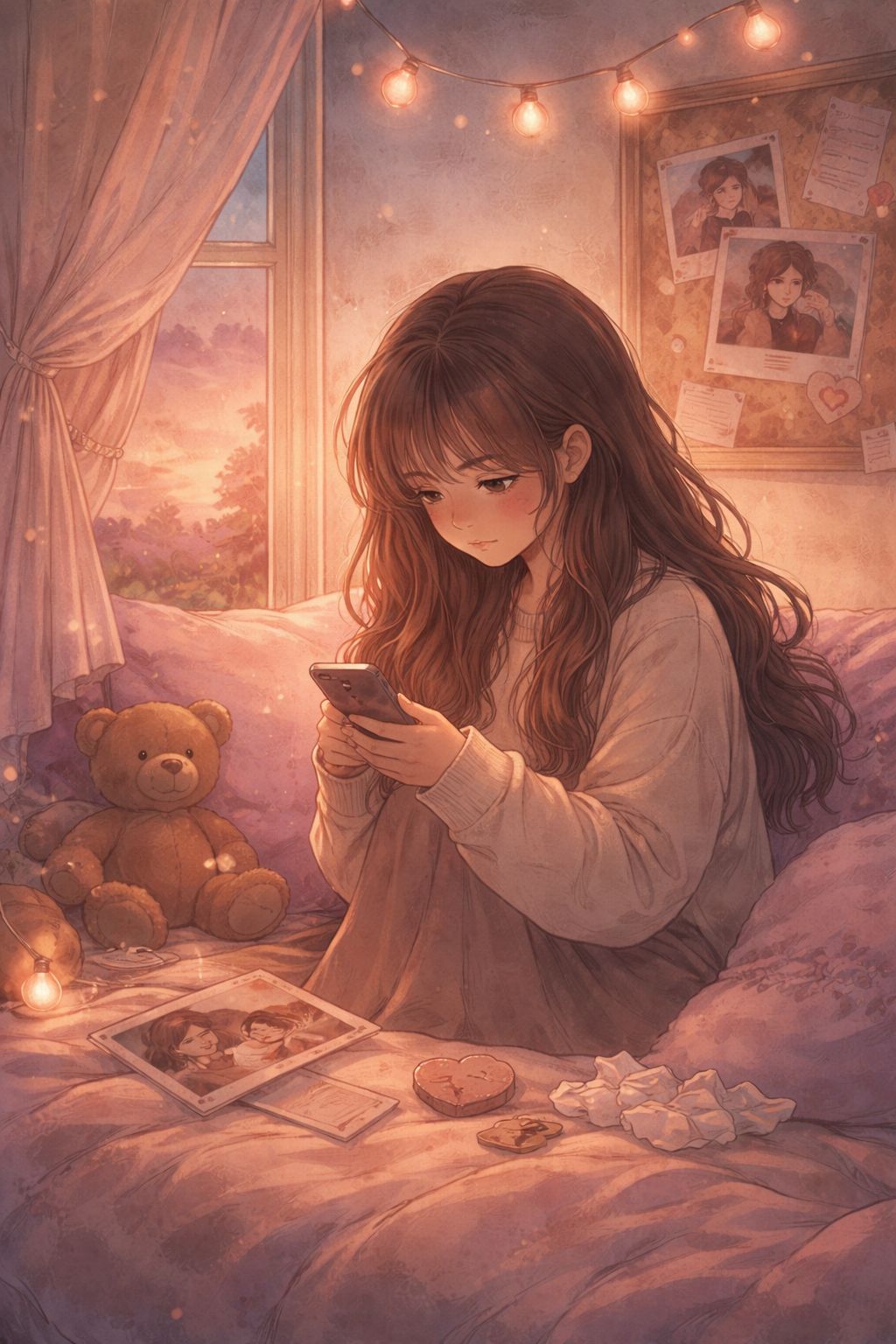 female vocals, sad, romantic, soft guitar, flute, harp, piano, synthwave