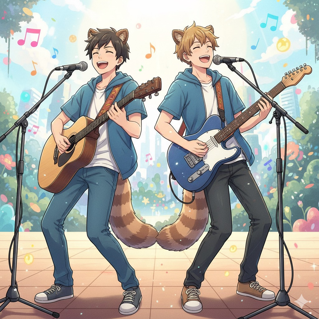 Instrumentation: Twin electric guitars with melodic unison leads and overdriven rhythm tones, supported by tight live drums and a solid bass groove, Piano and subtle strings enhance emotional depth in the bridge, evoking CANたま’s nostalgic warmth, Rhythm: Mid-tempo 4/4 groove with driving choruses and a half-time bridge for reflection and lift, Mood: Passionate, sincere, bittersweet yet uplifting, Texture: Full-band energy blending raw rock intensity with emotional cinematic layering, Vocal: Clear and heartfelt male vocal with a slight rasp, delivering emotional honesty and resilience, Production Notes: Recorded with analog saturation for warmth, live reverb space, and wide stereo guitars, Bridge should shimmer softly to mirror CANたま’s luminous emotional resonance