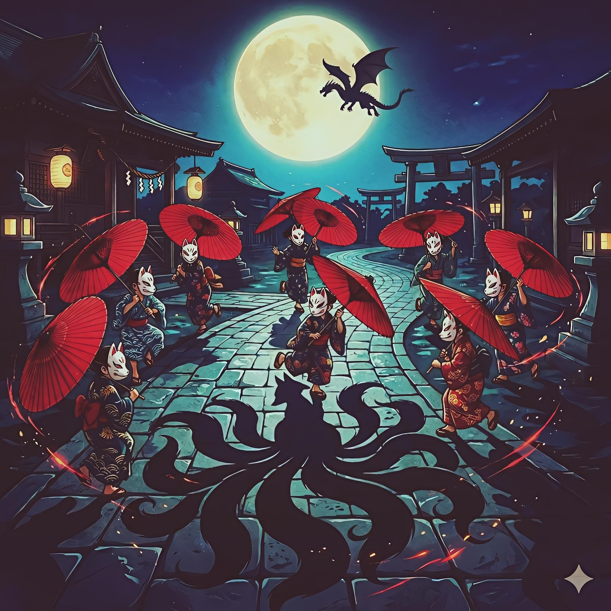 Hybrid J-pop with Japanese–Chinese traditional fusion, female vocals; koto and shamisen riff over bright trap-pop drums, erhu and dizi answering the topline, Verse stays intimate with plucked strings and light percussion; pre-chorus lifts with rising pads and toms; chorus blooms wide with stacked harmonies and taiko accents, First instrumental drop brings a melodic flute lead and chopped vocal phrases; final chorus modulates up with glittering synth arps and bigger drums, then outro strips back to solo vocal over a single lingering koto chord