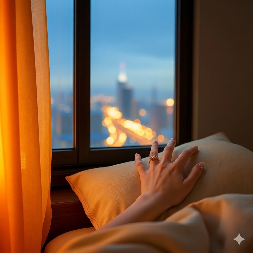 Soft Lofi City Jazz, male whisper vocal, extremely intimate close-mic, breathy, slow delivery, warm classical guitar arpeggio, gentle vinyl noise, night city ambience, 70bpm, cozy, sleepy, emotional warmth, minimalist, tender phrasing, no power