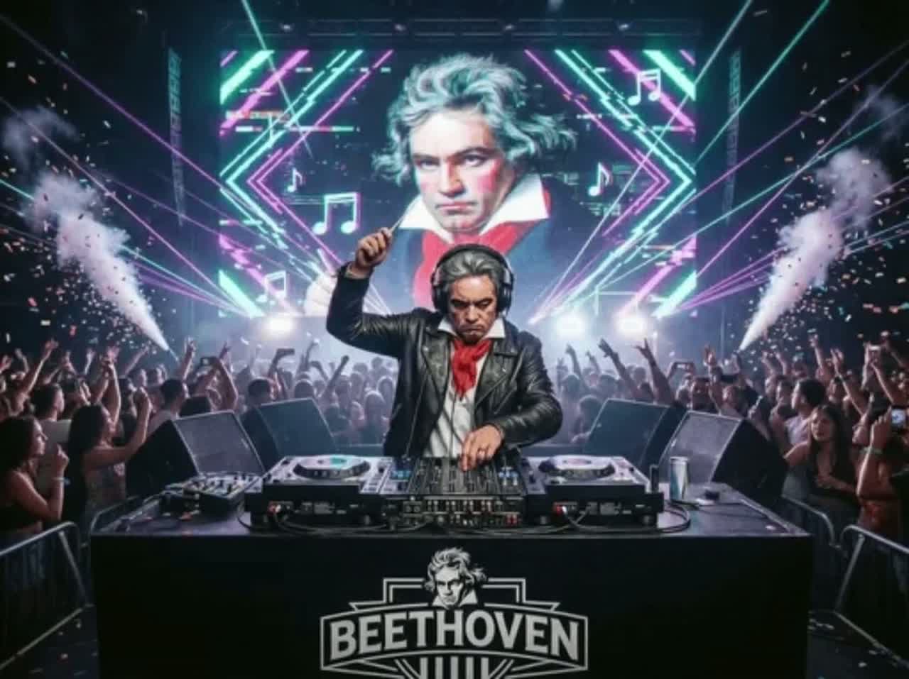 Upbeat Rave, Big room House, Uplifting Euphoric Stacatto Violin, **progressive house**, **classic/uplifting trance**, and a **forceful violin ostinato** delivers an electrifying, euphoric soundscape, The rhythm pulses at 128-132 BPM with a pounding EDM kick, sharp snares, and syncopated hi-hats, infused with trance’s driving basslines and anthemic energy, The violin ostinato cuts through with aggressive, rhythmic stabs, its intense, repeating motifs escalating into soaring, emotive peaks, Powerful, shimmering pads surge with vibrant, uplifting energy, evoking cosmic expanses, The melody builds relentlessly, blending trance’s euphoric arpeggios with EDM’s punchy drops, This fusion creates a high-octane, dancefloor-ready track, balancing the violin’s raw intensity, trance’s spiritual lift, and EDM’s visceral power, perfect for epic festival moments or cinematic climaxes