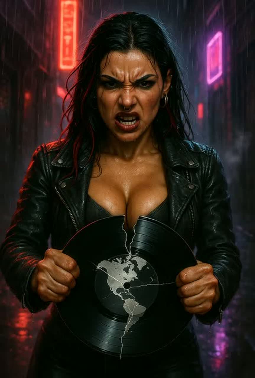 High-energy PHONK with a 90s Memphis rap backbone, fast 180 BPM in a minor key, Deep TR 808 kick and heavy sub-bass, sidechained for a constant driving pulse, Sharp 808 snare, rapid hi-hats, and a distorted cowbell riff for the hook, Add Brazilian tamborzão percussion for syncopated heat and fast street movement, Layer a lo-fi Rhodes electric piano with short, reverb-washed chord stabs, paired with a slightly detuned saw lead for eerie fast runs, Chopped and pitched-down rap vocal samples for texture, vinyl crackle for grit, In the bridge, bring in a twangy balalaika riff for foreign edge and a breathy lo-fi sax for smoky contrast, Atmosphere: neon rain, street smoke, chrome reflections, underground drift energy, Vocals female, cold, confident, detached, arrogant, amused at everything, Reverb short and metallic, no autotune shine, keep the voice raw and tight
