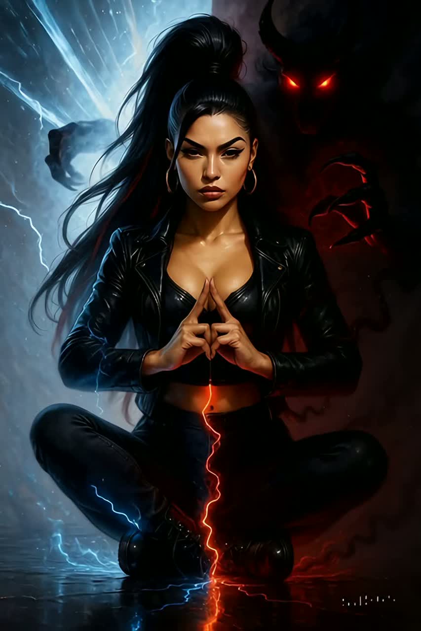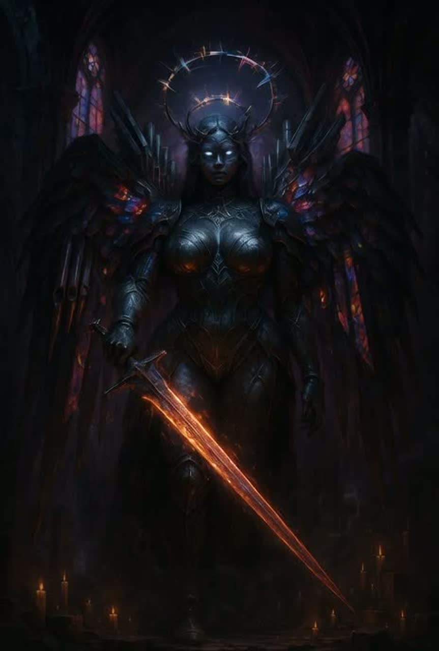 vinyl crackle, subtle glitch ambience, sacred cinematic mood, ritual tension, no soft vocals