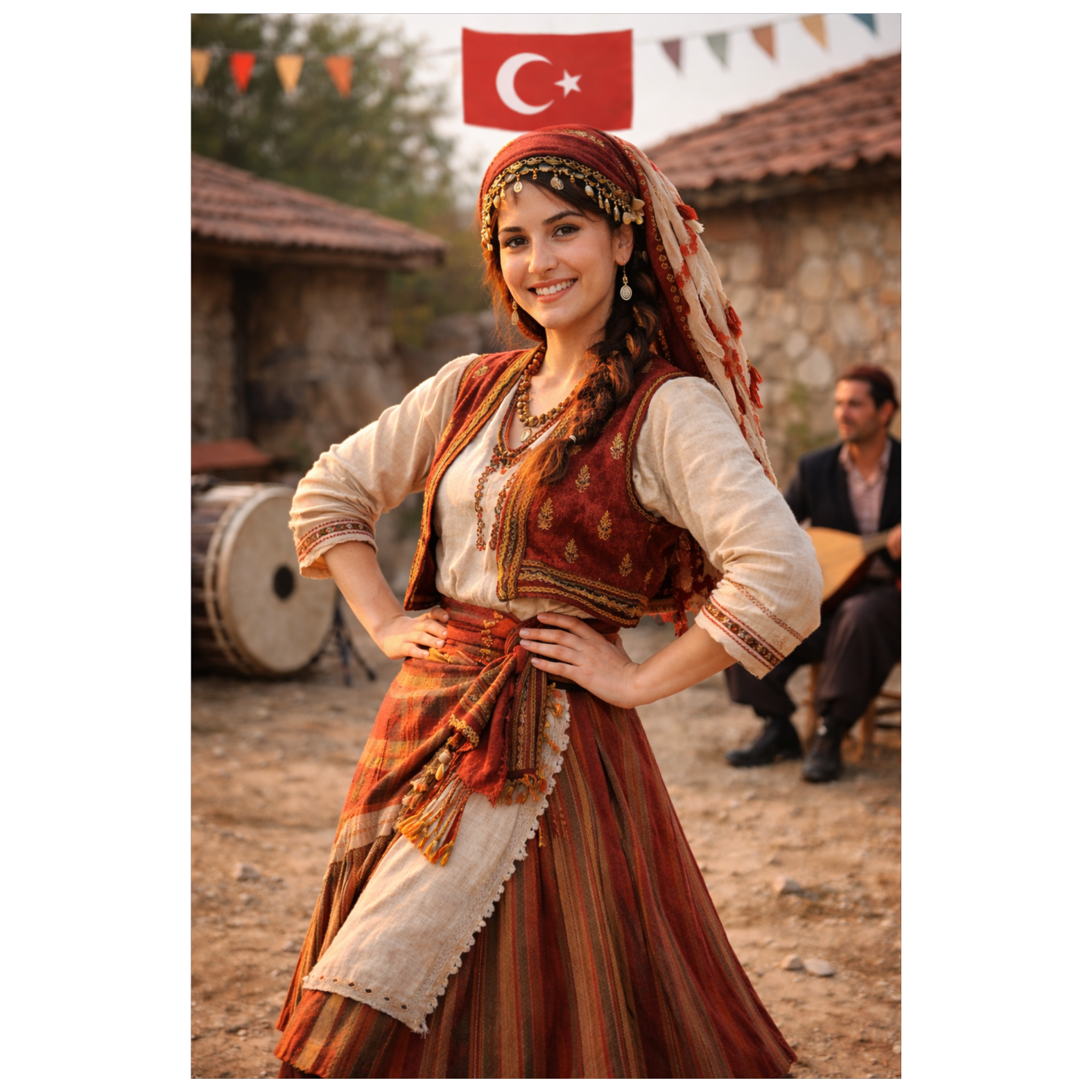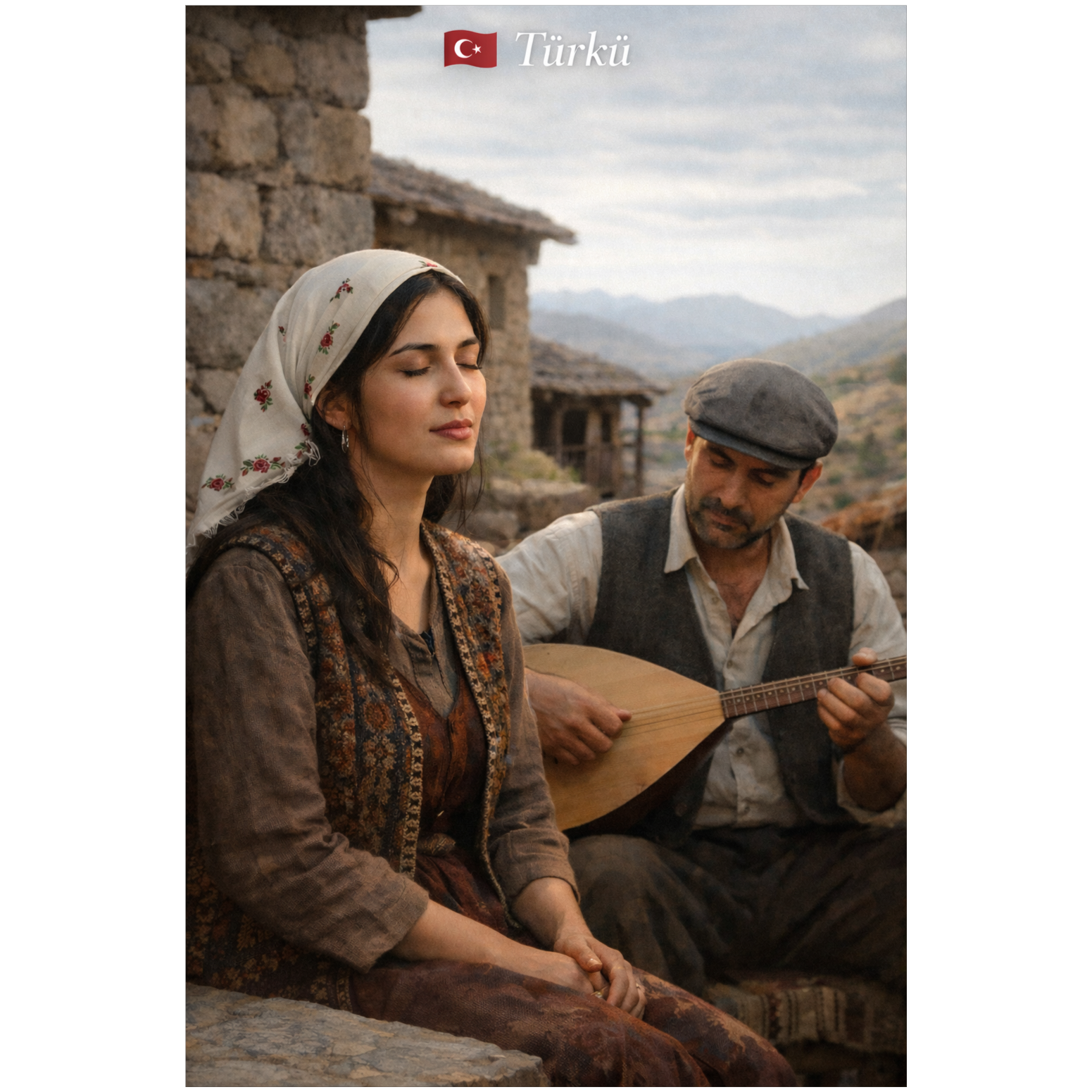 A heartfelt Bulgarian folk song in Turkish featuring a female lead vocal with rich, emotional timbre, expressing love, longing, and devotion, Traditional Balkan instruments create the authentic atmosphere: gaida (bagpipe) weaving haunting melodies, kaval (flute) adding airy, soulful lines, gadulka (bowed string) providing warm harmonic support, and tupan (drum) driving the asymmetrical 7/8 rhythm that makes the song danceable yet introspective, The music evokes the rolling hills, rivers, and rustic villages of Bulgaria, immersing the listener in a world of passion and nostalgia, Lyrically, the song reflects themes of love, separation, and yearning, with a chorus that is both melodic and memorable, Ideal for traditional folk music enthusiasts, cultural storytelling, or cinematic moments that require raw emotional expression, Perfect for folk fusion arrangements, acoustic performances, and cinematic folk soundscapes