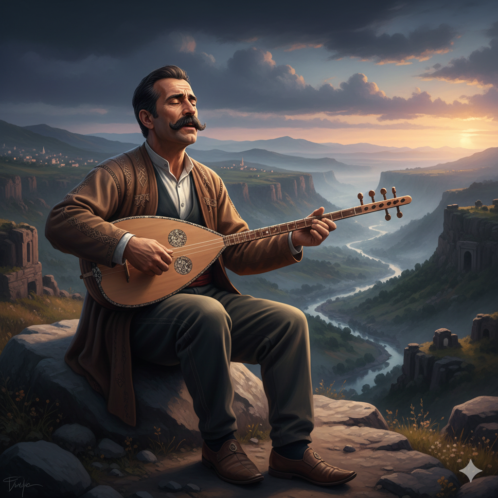 A slow 6/8 pulse anchors this deep Turkish folk ballad, The lead bağlama offers poignant, delicate motifs, joined by soft keman lines and restrained clarinet phrases that weave through each verse, The male vocal, expressive and slightly raspy, sits front and center, Deep bass percussion provides a steady, unobtrusive heartbeat, while ney textures float in optional passages, enriching the song’s melancholic, introspective mood, Dynamic swells rise gently toward instrumental breaks, each section carefully textured to evoke poetic nostalgia