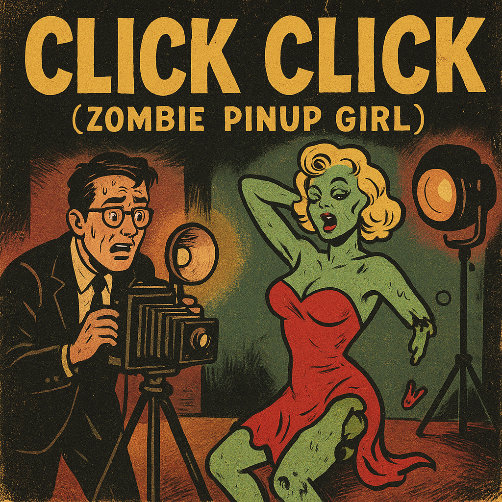 Doo-Wop, Gothic Fusion, Comedy Rock, campy, spooky, funny, vintage, bpm: 96, upright bass, finger snaps, retro guitar, church organ, handclaps, backing vocals, 50s doo-wop style with gothic twist, theatrical male lead vocal, doo-wop backing harmonies